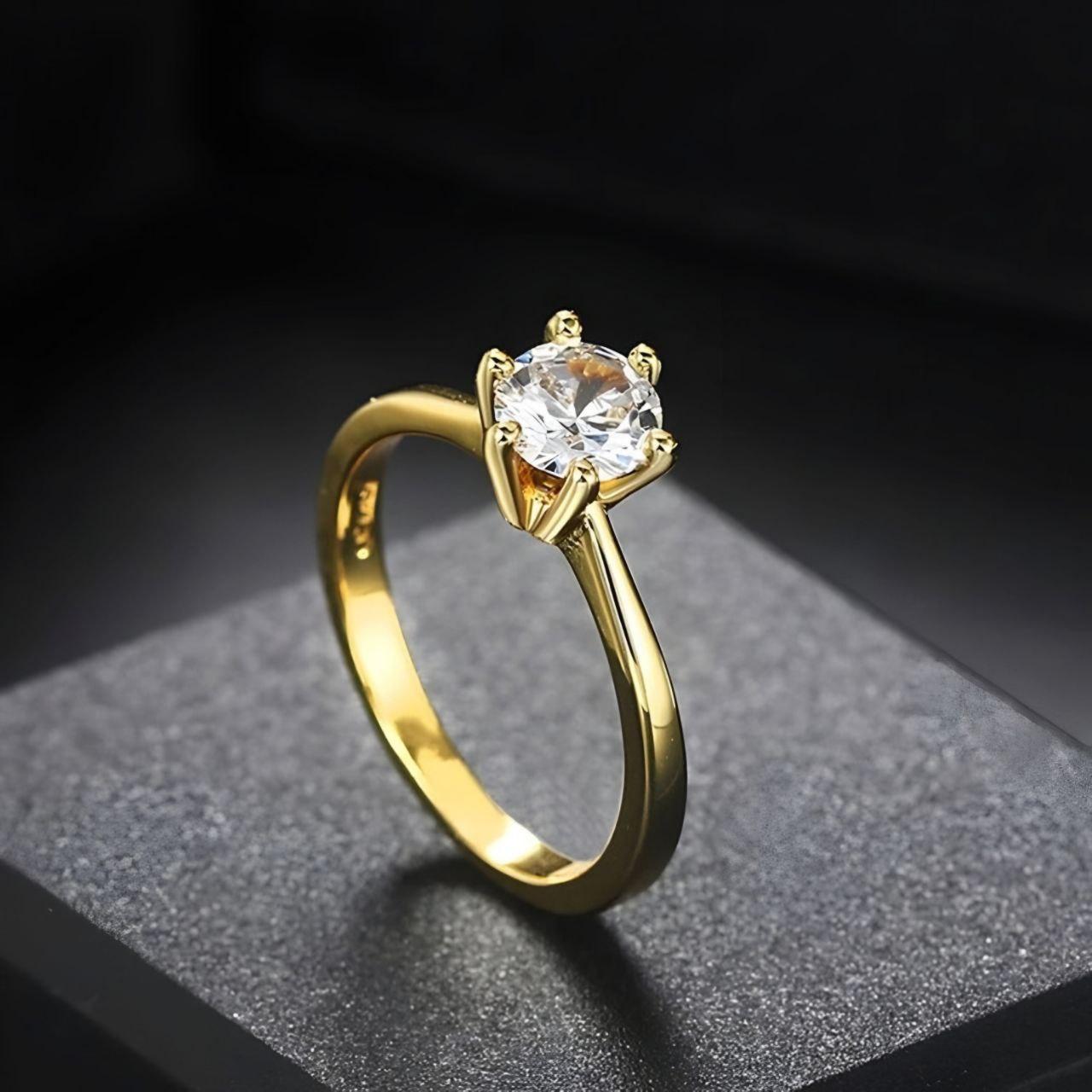 Designed with a single sparkling stone and a beautiful golden finish, it gives a classy and clean look without being too heavy.