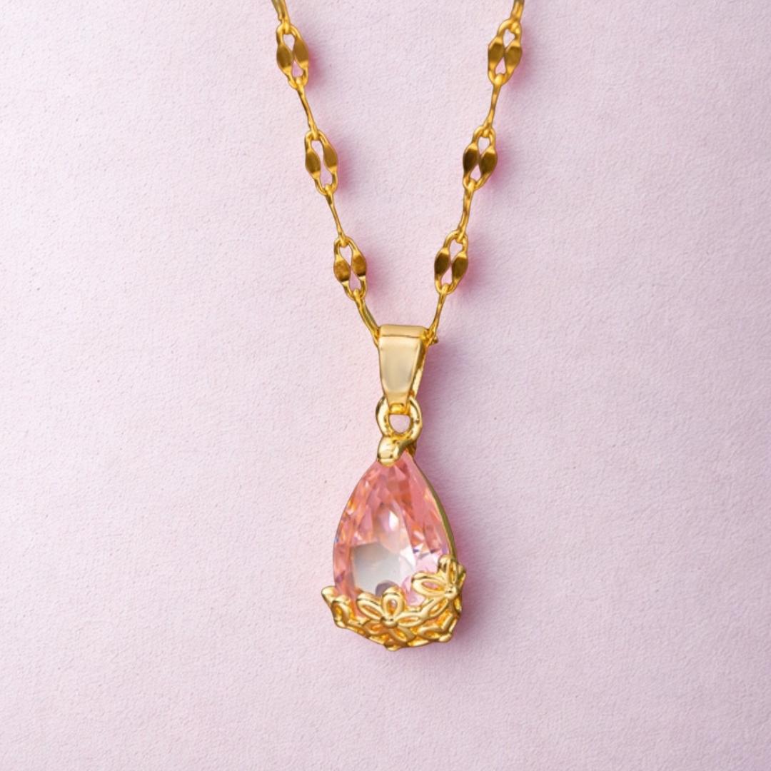 Elevate your everyday aesthetic with a piece that balances romantic charm and modern durability. This stunning teardrop pendant captures the light with every movement, offering a soft pink glow that feels both luxury and effortless.