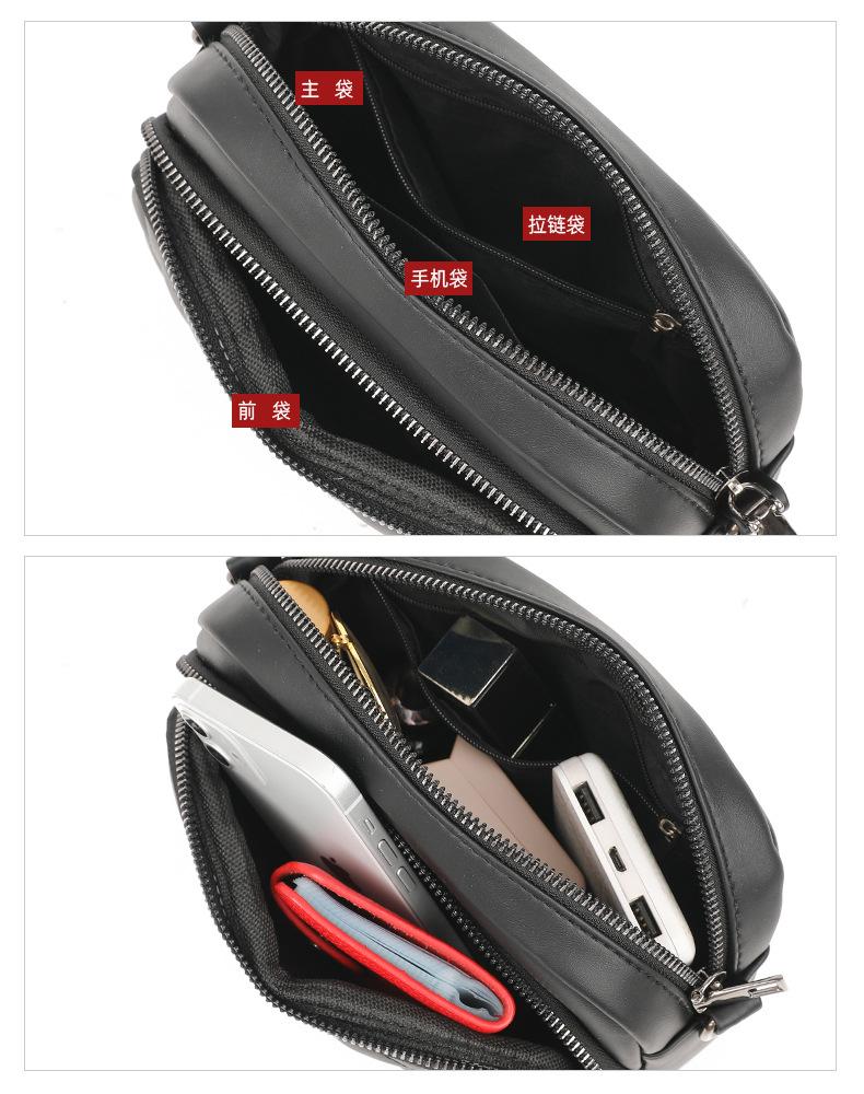 Sleek and stylish crossbody bag with 3 secure zipper compartments.