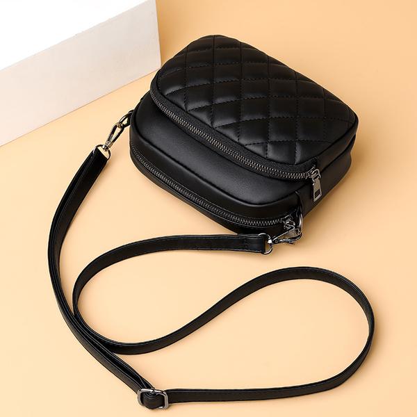 3 Zipper Crossbody Women's Elegant Handbag - Black