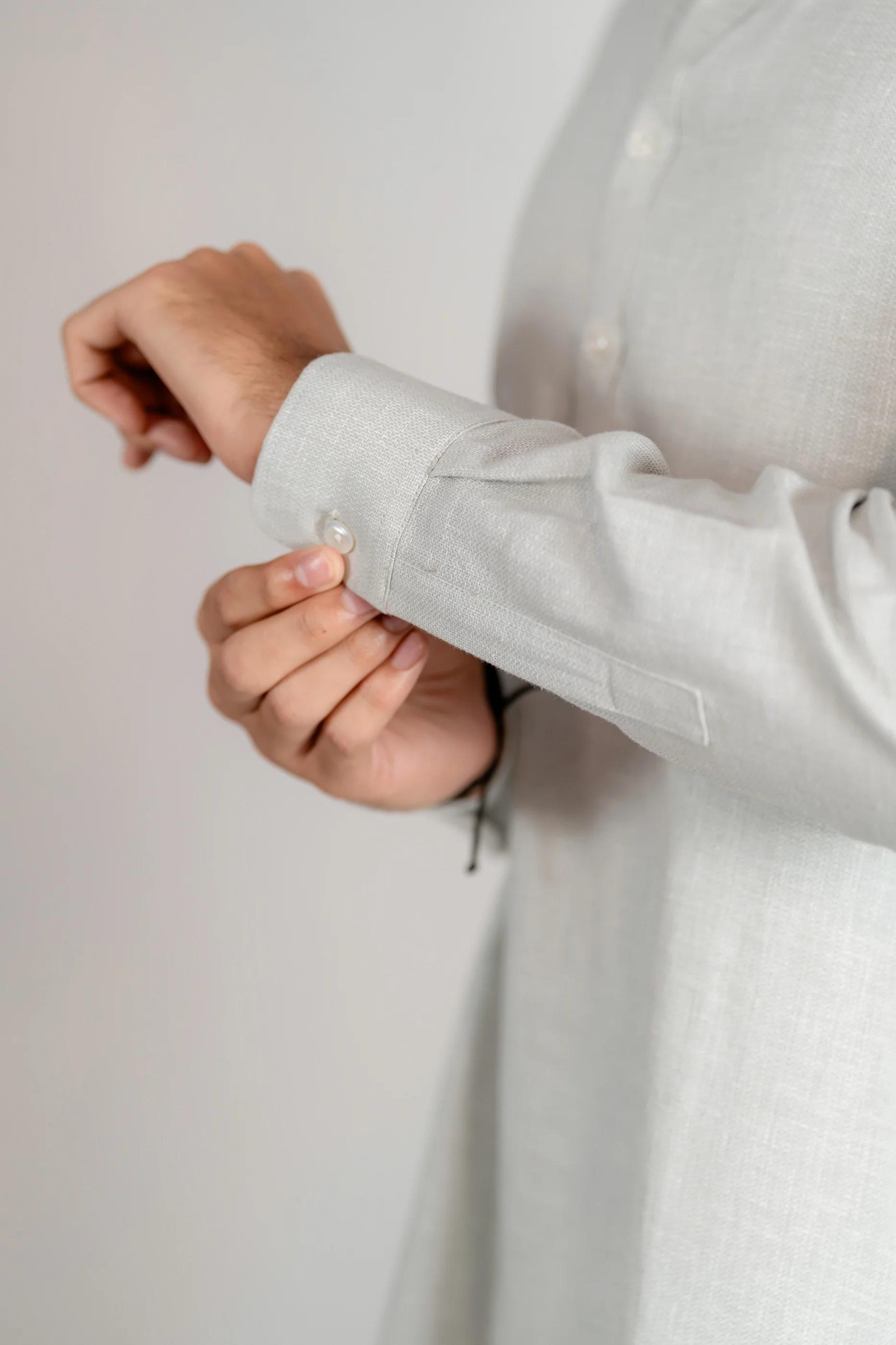 The Aarib Kurta brings the poise of a classic kabli into the modern era, meticulously designed for the contemporary man. Cut from airy cotton jacquard, it maintains a sharp, structured silhouette while remaining feather-light—making it the definitive choice for warm Eid mornings where style and comfort are non-negotiable.