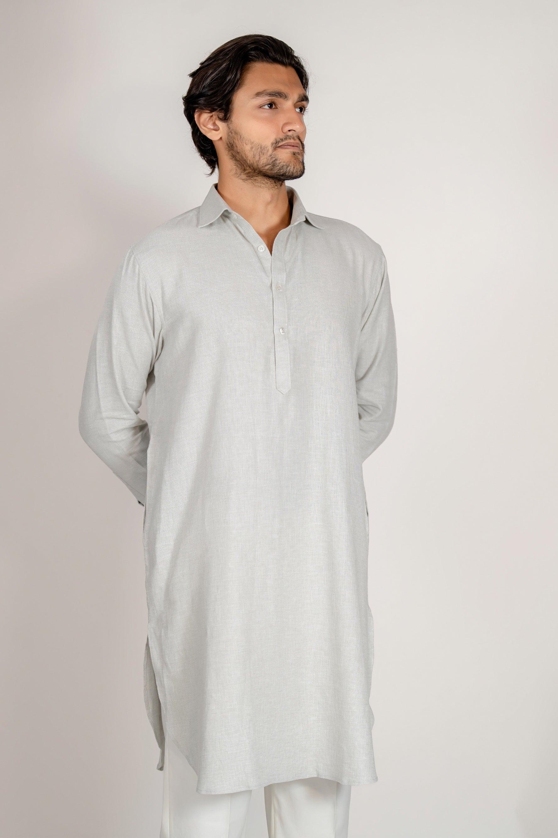 Designed with a collared, kabli-inspired neckline to bridge the gap between traditional heritage and modern fashion.