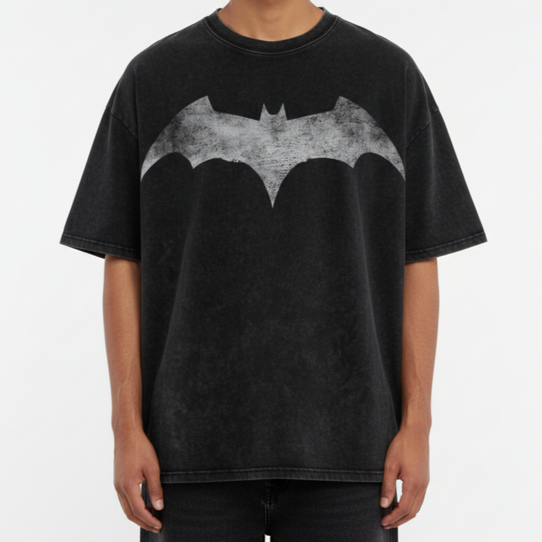 The Acid Wash Printed Drop Shoulder T-shirt blends a rugged vintage aesthetic with a modern, oversized silhouette. Featuring a large, weathered bat-inspired graphic across the chest, this piece is designed for those who want a standout streetwear statement with a relaxed feel.
