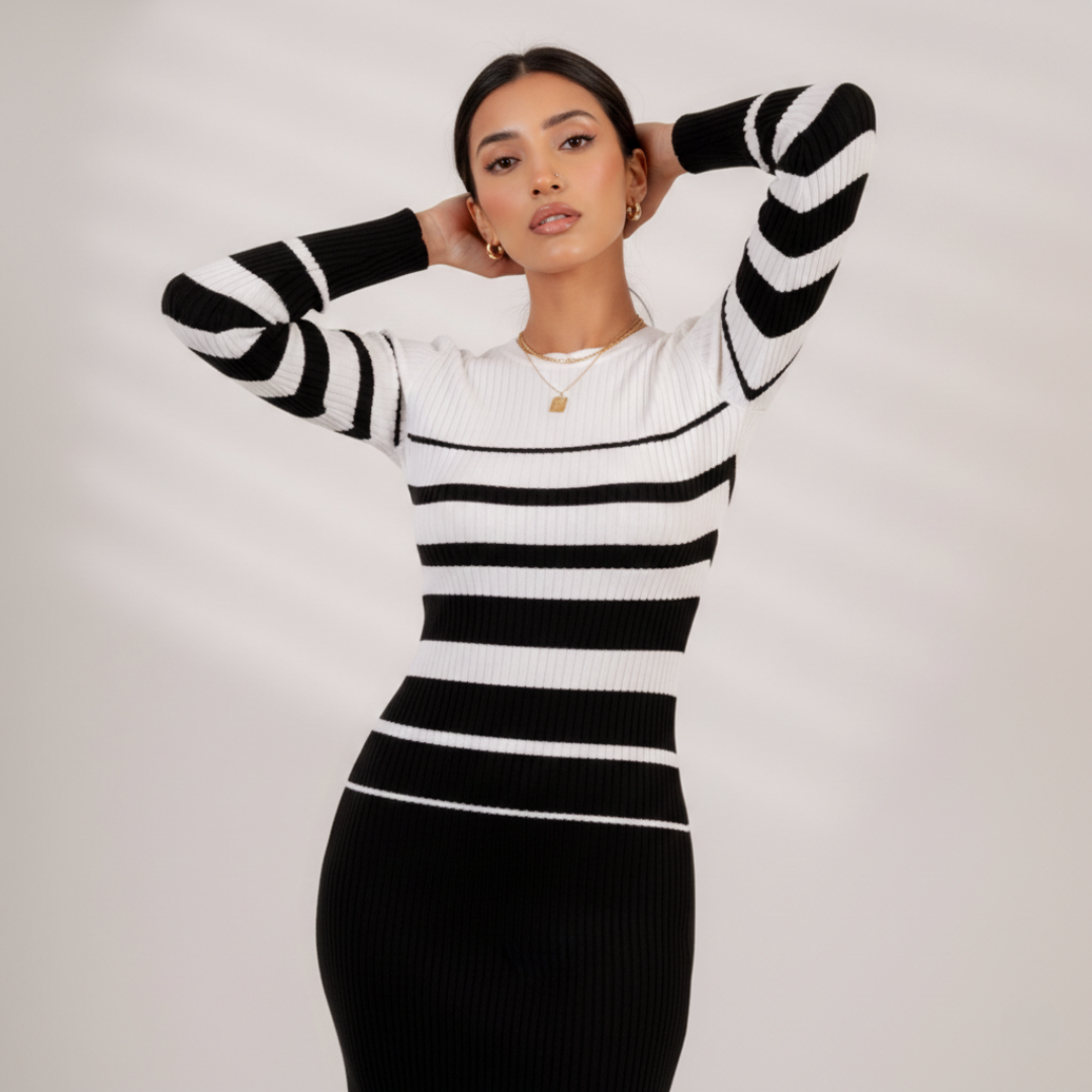 Make a bold statement with the Alessandra Bodycon Dress, a piece designed to combine effortless elegance with a striking, modern silhouette. Engineered with an ultra-stretchy fit, this dress is crafted to hug curves perfectly while providing a sophisticated, textured finish.