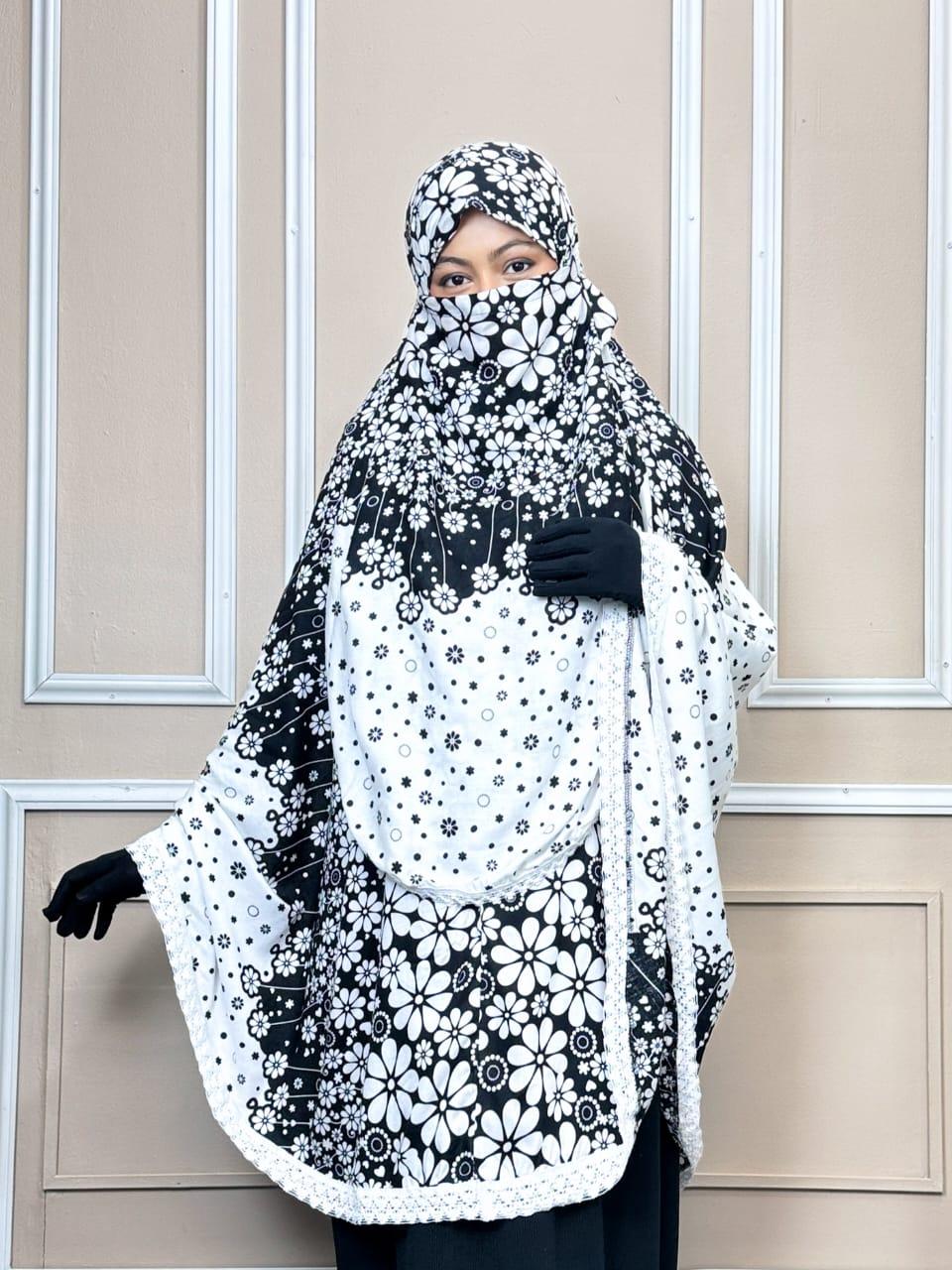 Amanah Viscose Cotton Hijab — Black & White Floral Print