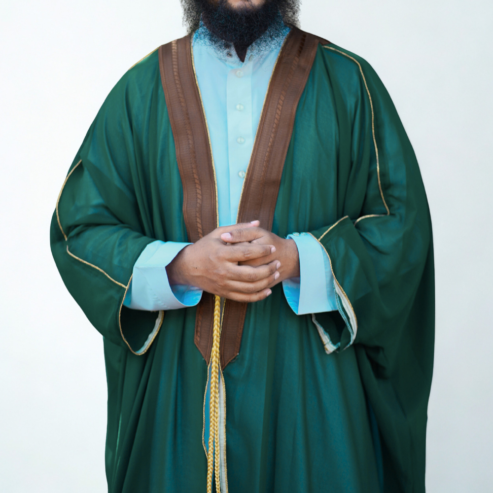 Experience a blend of nature-inspired tones and high-tier craftsmanship with the Arabian Abakaba, a garment that stands as a living reflection of Islamic culture and dignity. This striking dark green silhouette offers an elite and organized presence for those attending the most precious moments, from Eid prayers to wedding celebrations.