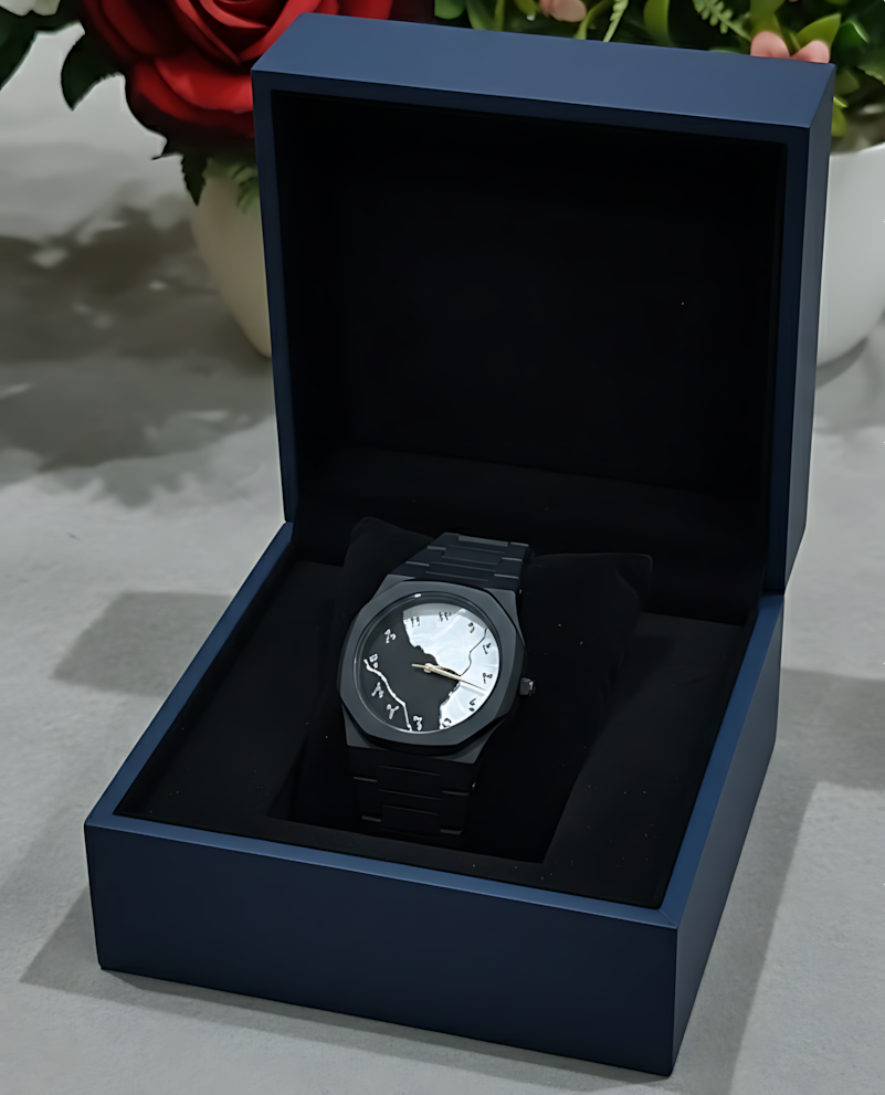 Make a bold statement with this all-black timepiece designed for modern minimalism. Its sleek matte finish and sharp detailing create a powerful, confident look. Perfect for those who prefer understated luxury with a strong edge.