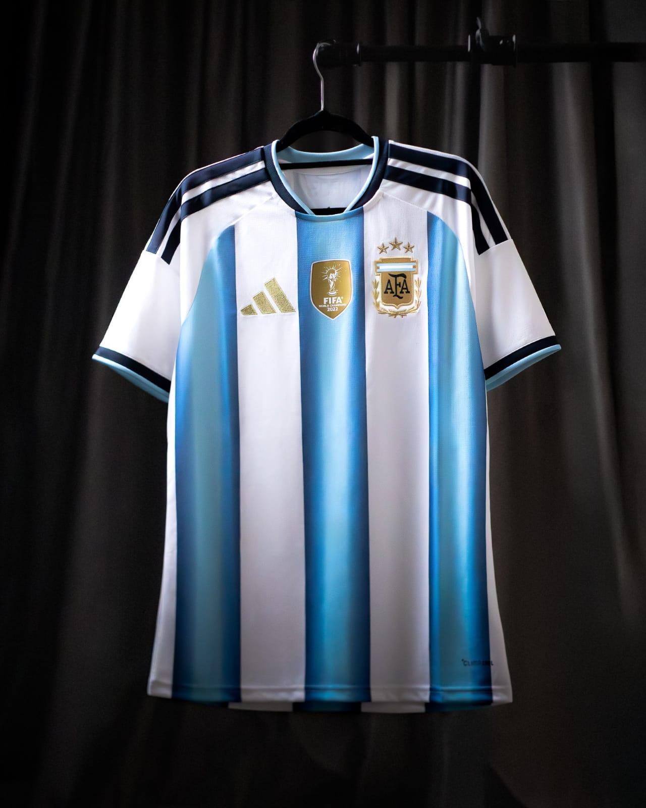 Gradient Stripe Design: Iconic sky-blue and white stripes with a unique gradient transition symbolizing the evolution of Argentina's winning kits.