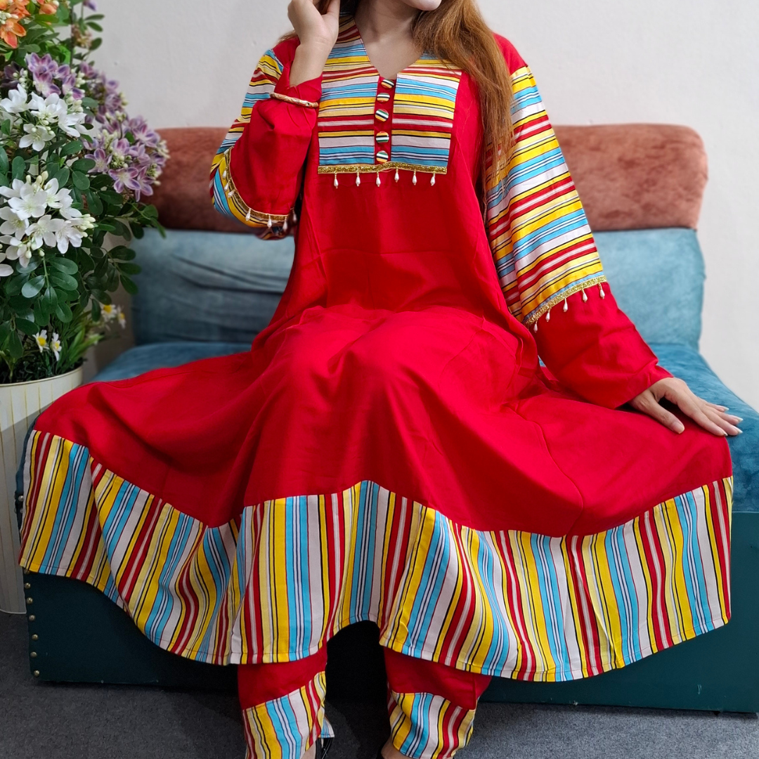 Make a powerful statement with this Artisan Stripe Co-ord Set, a bold and attractive ensemble that combines a wealthy crimson hue with neat, structured detailing. This two-piece set is specifically designed for a soft and comfortable feel, making it an aristocratic choice for all-day wear.
