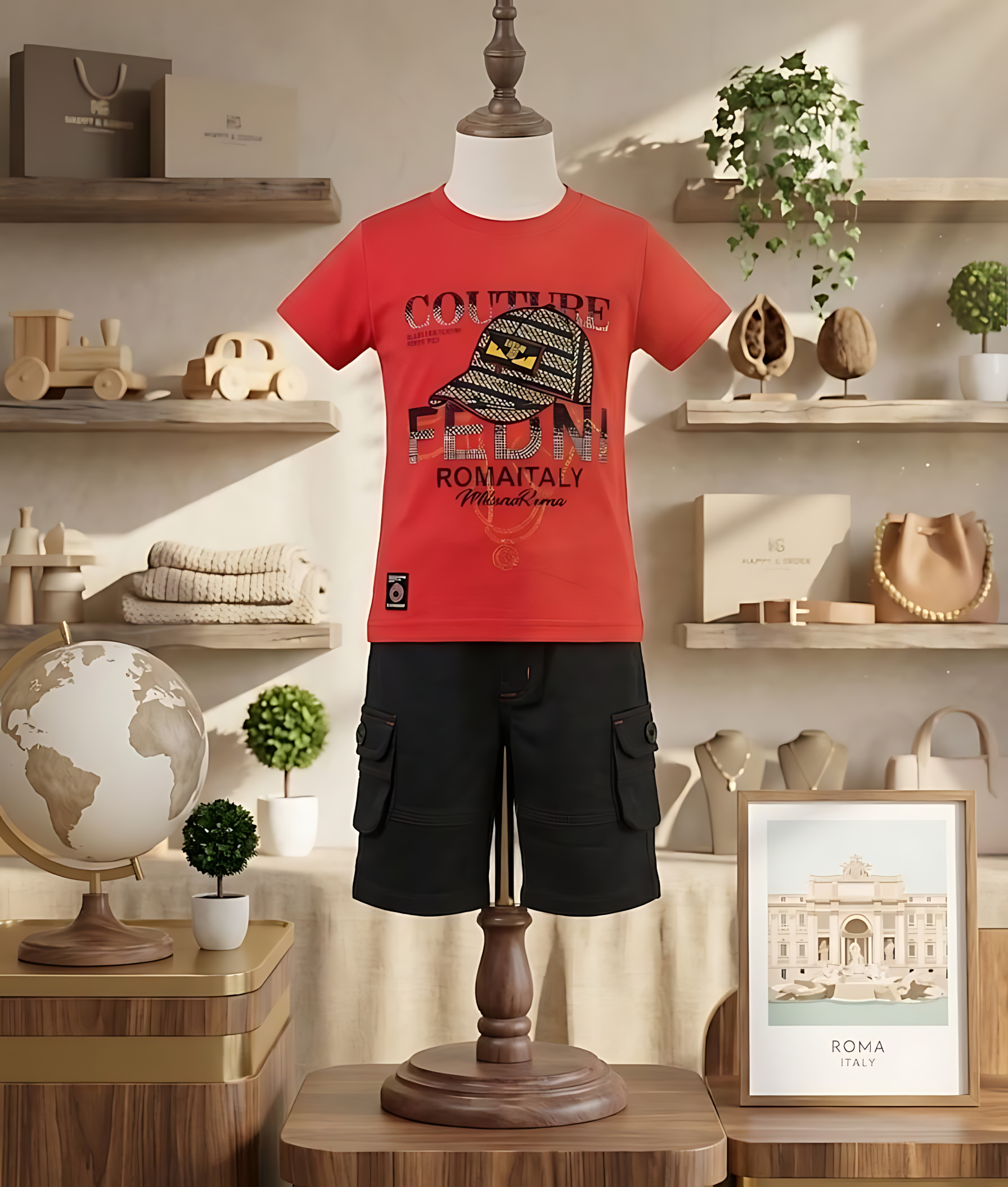 Baby Boy Red Graphic T-Shirt & Cargo Shorts Set