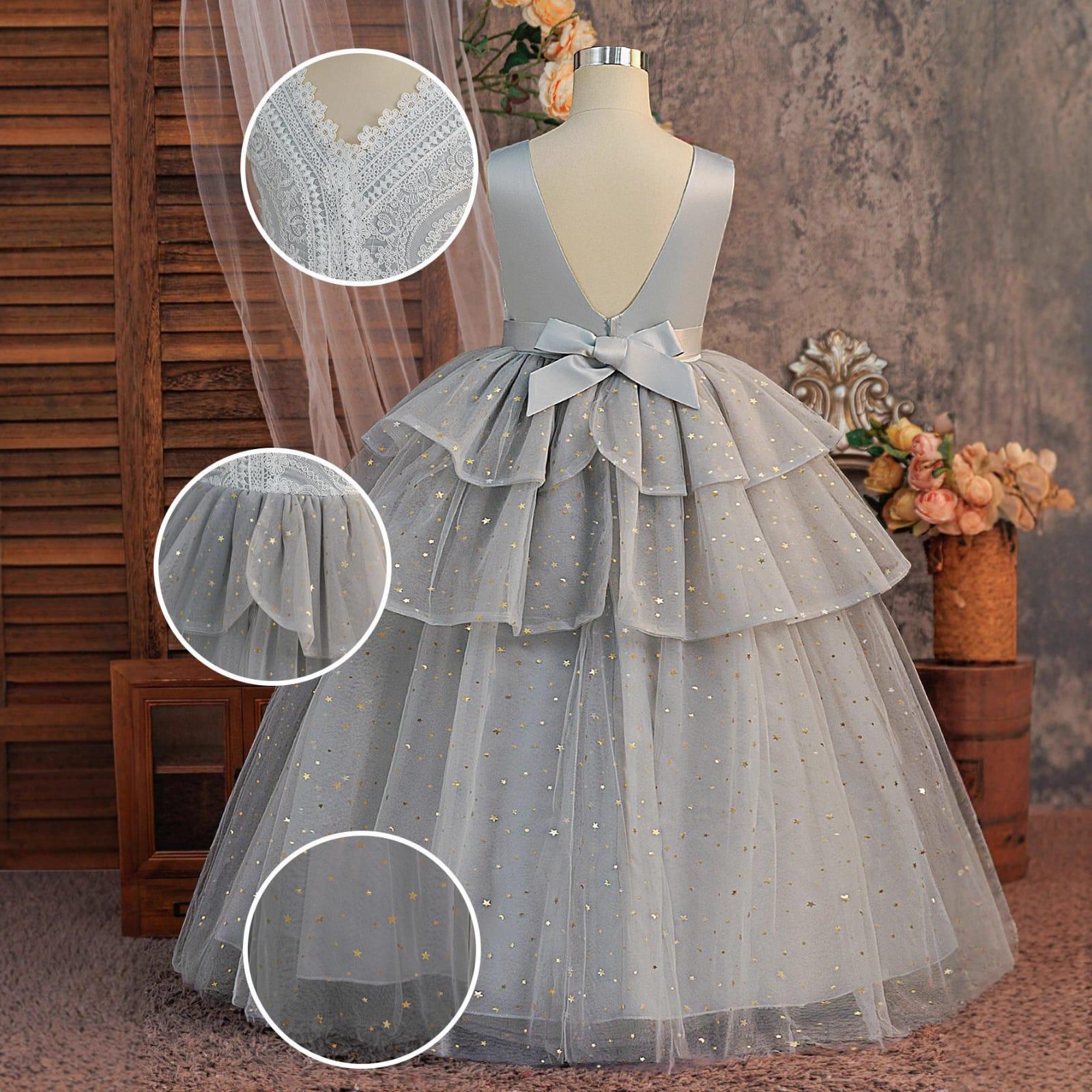 This charming princess-style dress is designed to make your little one look adorable and elegant. The beautiful royal color with sparkling star details creates a magical and festive look. Perfect for birthday parties, special occasions, or photoshoots.