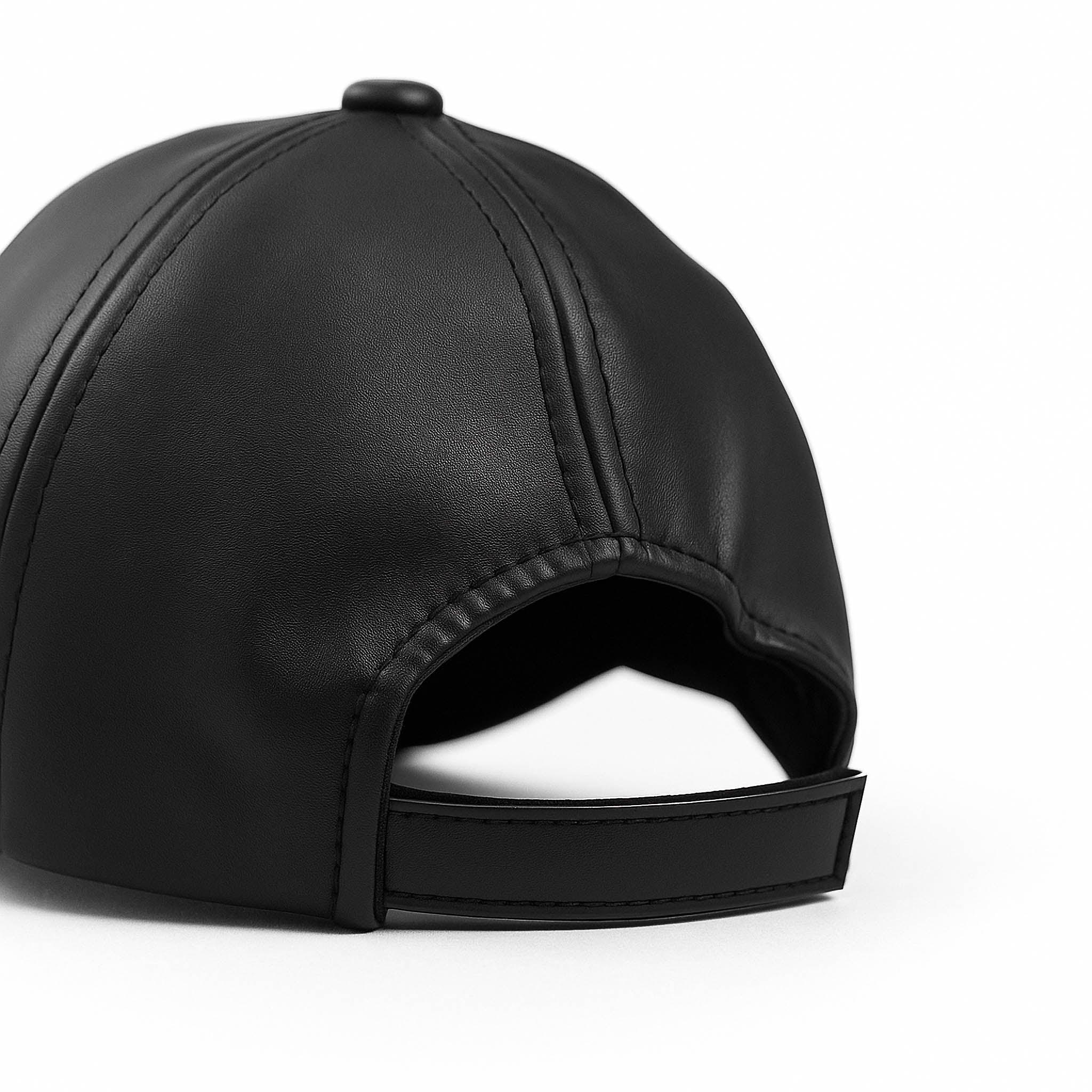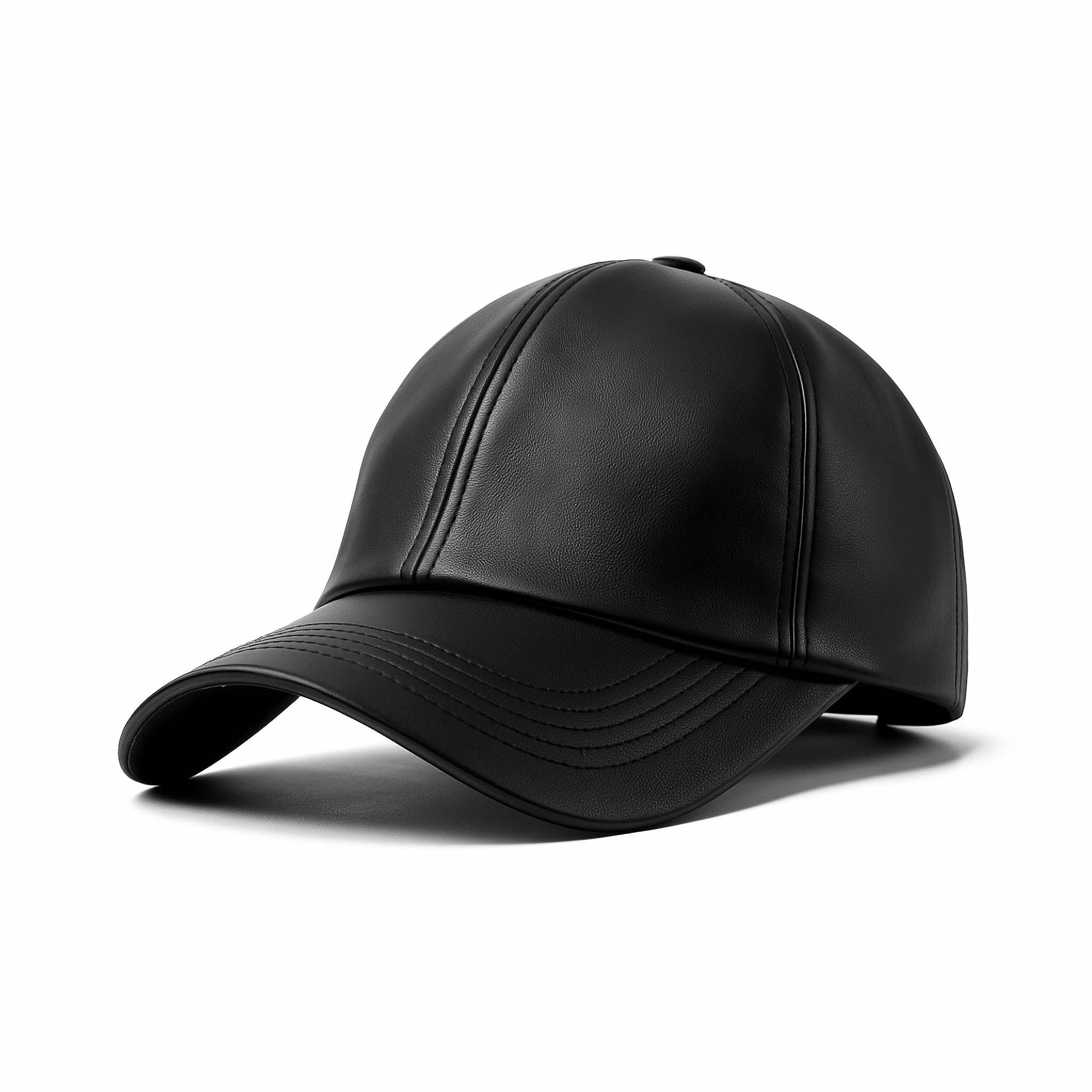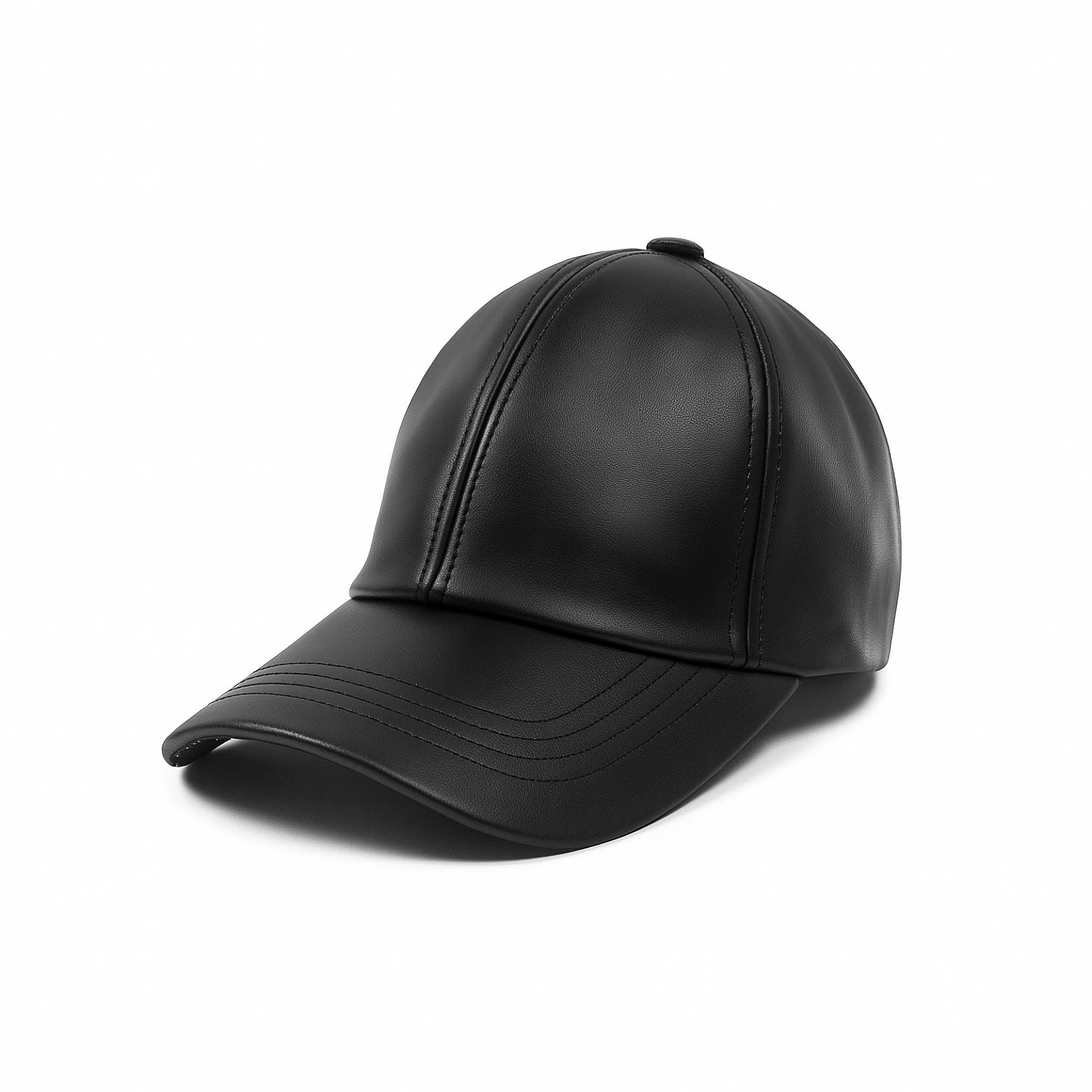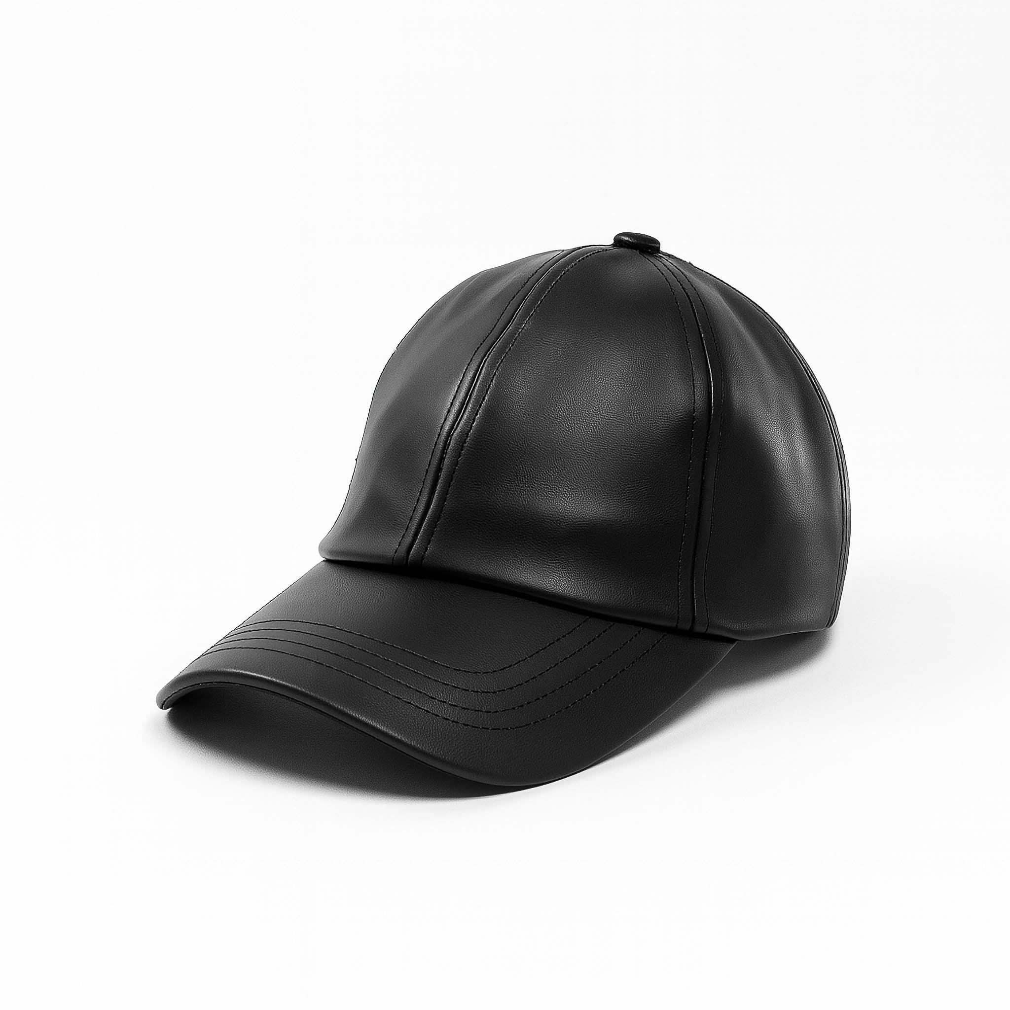 Classic Faux Black Leather Cap