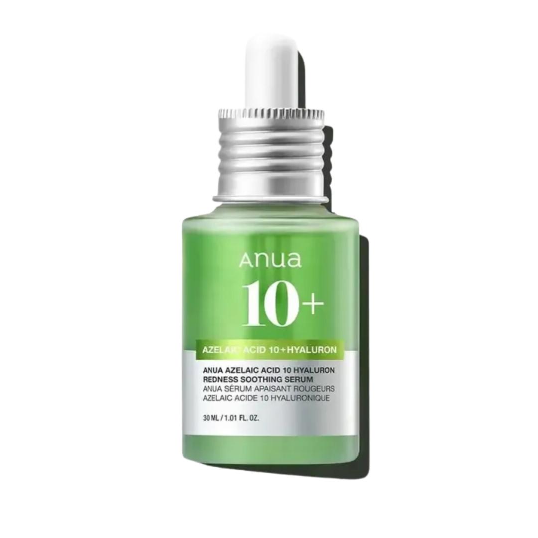 Anua Azelaic Acid 10 Hyaluron Redness Soothing Serum (30ml) – Korea: A specialized formula containing 10% Azelaic Acid to target visible redness, post-acne marks, and uneven skin texture. It helps clear pores and soothe sensitive or rosacea-prone skin.