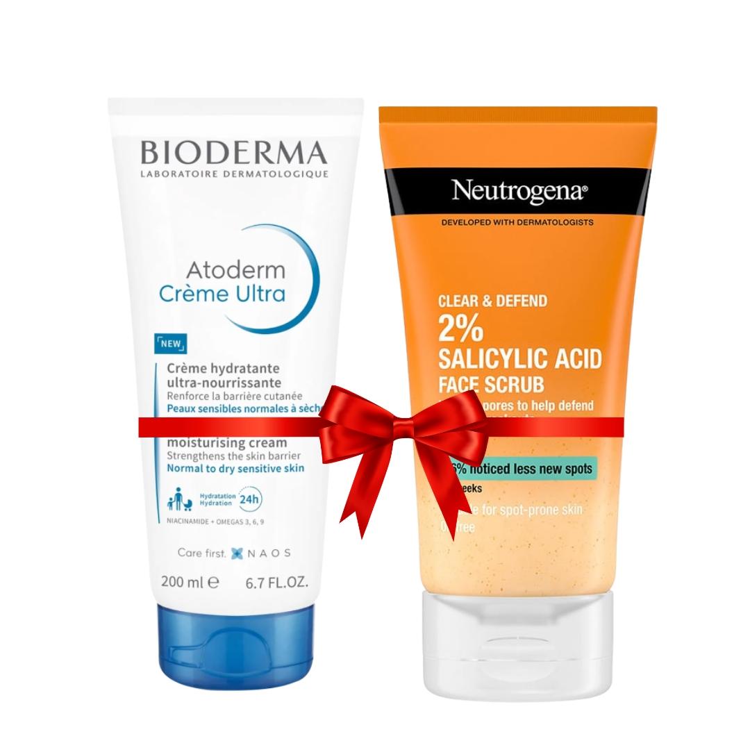 Combo Of Bioderma Atoderm Creme 200ml & Neutrogena Clear & Defend Scrub 150ml (France)