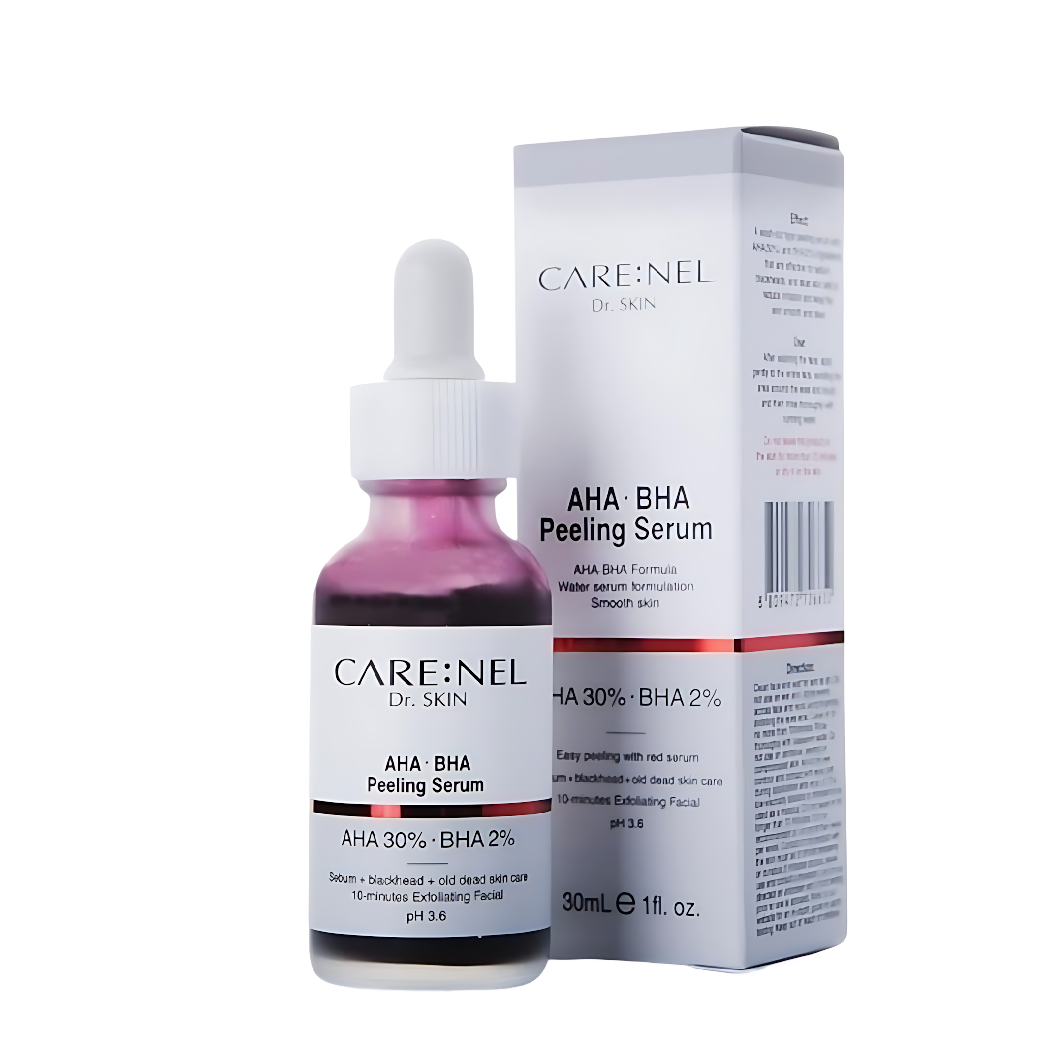 CareNel AHA BHA Peeling Serum (30ml) – Korea: A powerful wash-off exfoliating treatment that targets skin texture and tone. It uses Alpha and Beta Hydroxy Acids to dissolve dead skin cells, clear clogged pores, and minimize the appearance of blemishes.