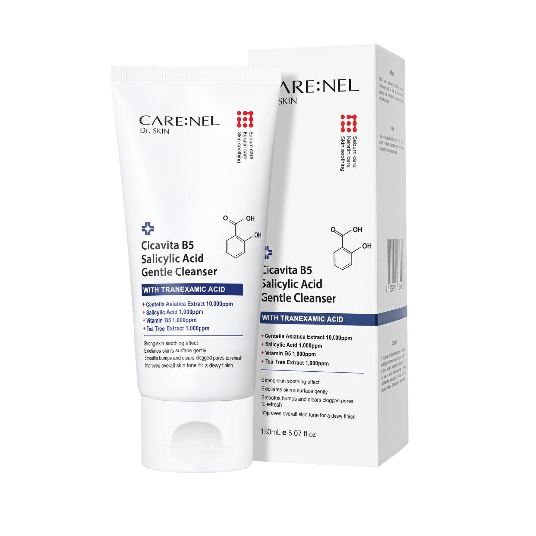CareNel Cicavita B5 Salicylic Acid Cleanser (150ml): A gentle yet effective foaming cleanser from Korea that uses Salicylic Acid to clear pores while Vitamin B5 (Panthenol) and Centella Asiatica soothe irritation.