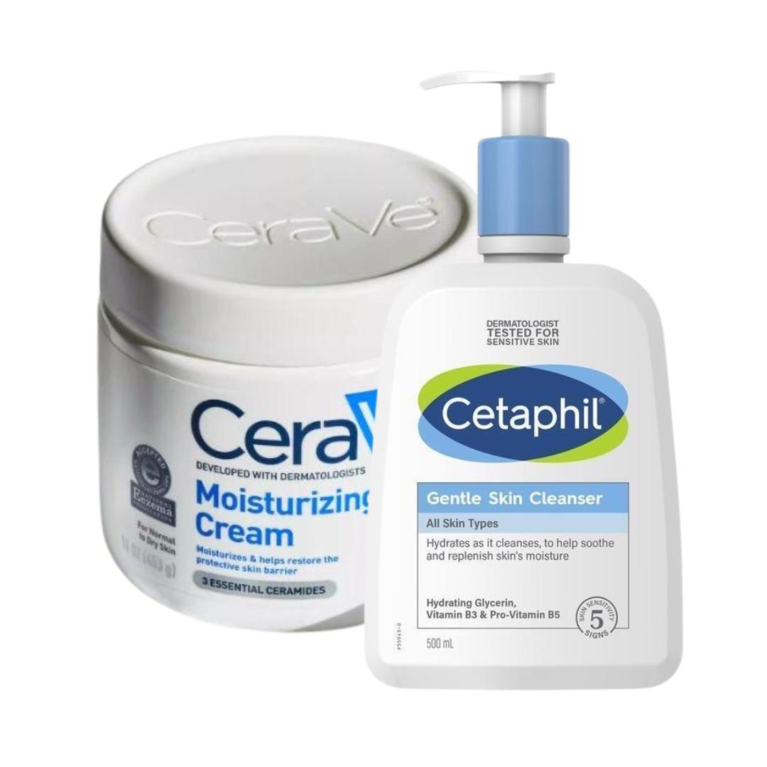 Combo Of Cerave Moisturising Cream 340g & Cetaphil Gentle Skin Cleanser 500ml (France)