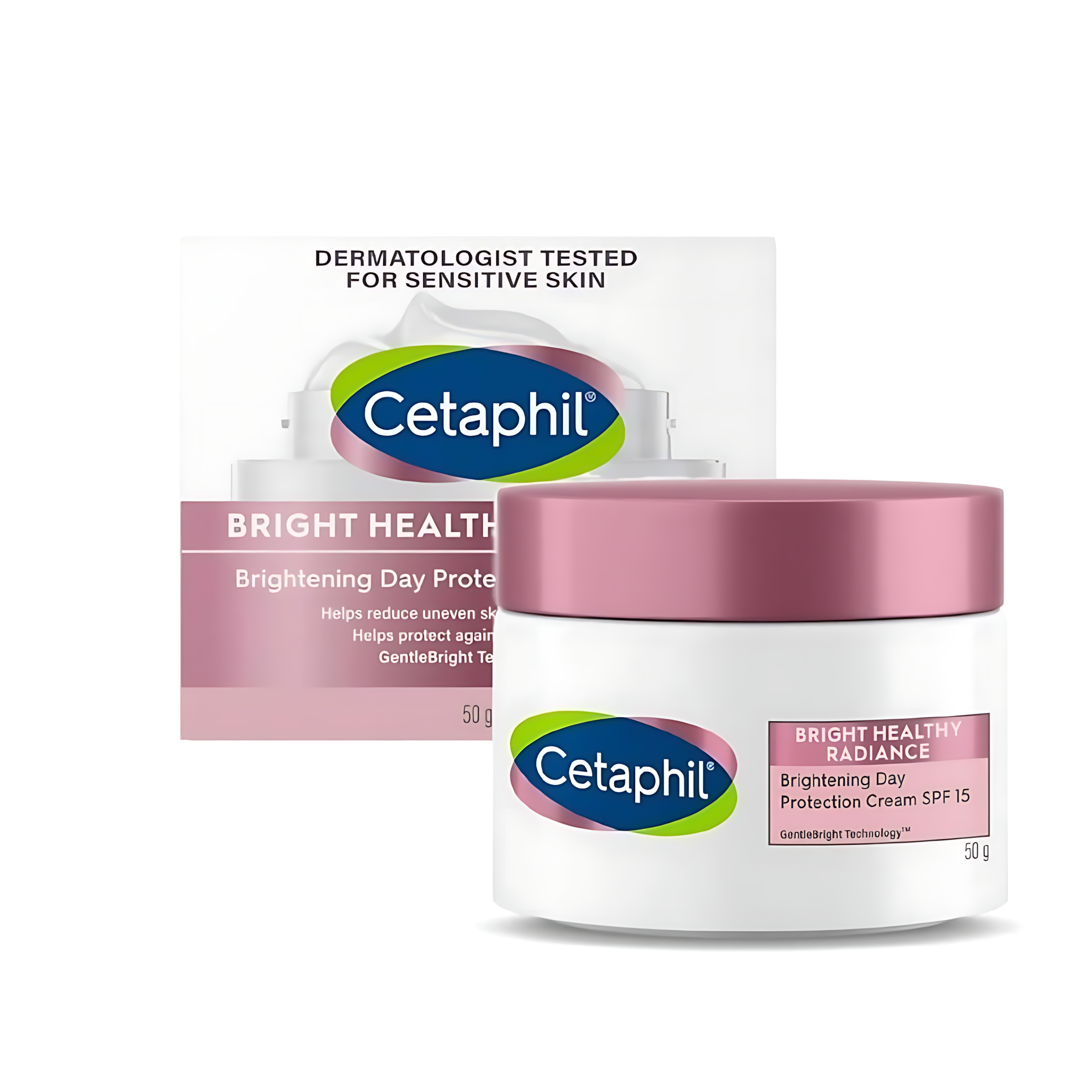 Cetaphil Bright Healthy Radiance Brightening Day Protection Cream SPF15 (50g) – India: A moisturizing cream featuring GentleBright Technology™ (Niacinamide and Sea Daffodil) that helps visibly reduce dark spots and even skin tone while providing SPF15 protection.