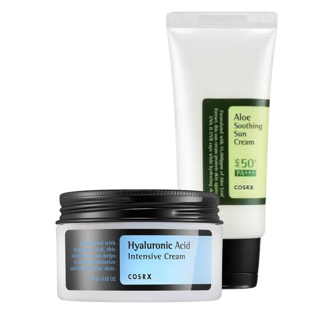 Lock in moisture and shield your skin from the sun with this ultimate hydration duo from COSRX. This combo pairs a high-performance moisture cream with a soothing aloe-infused sunscreen to keep your skin plump, protected, and glowing throughout the day.