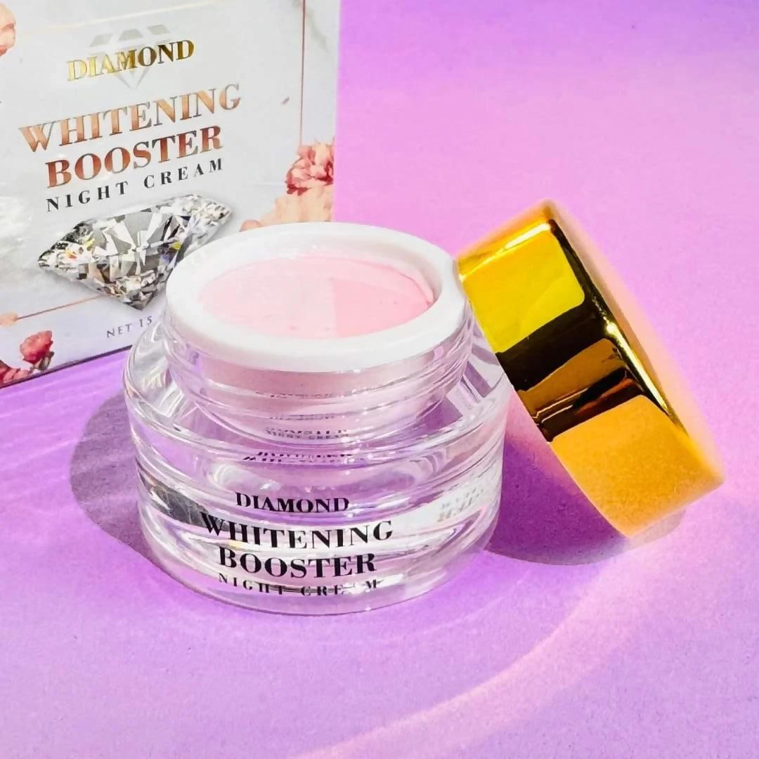 Diamond Whitening Booster Night Cream (15gm) – Thailand: A concentrated treatment designed to brighten the skin and fade dark spots. It works overnight to inhibit melanin production and restore a radiant, "diamond-like" glow.