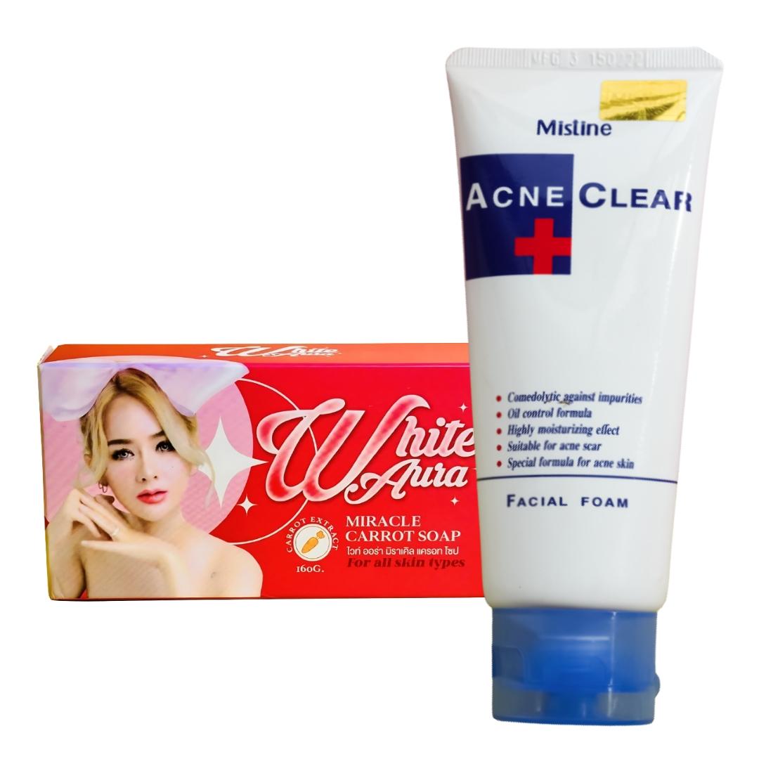 Combo Of Mistine Acne Clear Foam & White Aura Carrot Soap (Thailand)
