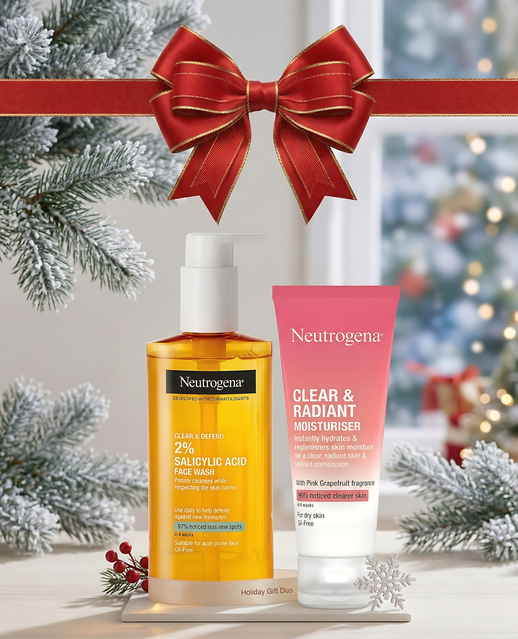 Upgrade your skincare routine with this Neutrogena Clear & Radiant combo, specially designed to fight breakouts while keeping your skin fresh and hydrated. The salicylic acid face wash deeply cleanses pores, while the moisturiser restores moisture for a clear, healthy glow.