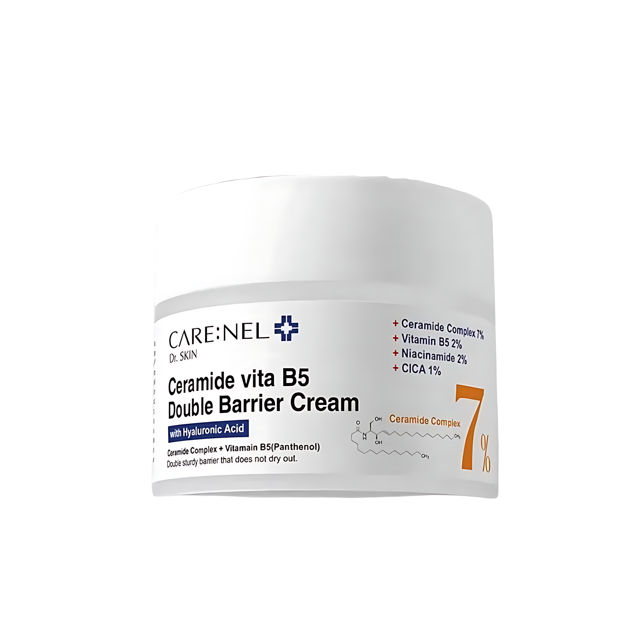 CareNel Ceramide Vita B5 Double Barrier Cream 7% (50ml) – Korea: A powerhouse recovery cream featuring a 7% concentration of Panthenol (Vitamin B5) and Ceramides. it provides a "double barrier" effect to lock in moisture and heal damaged or irritated skin.