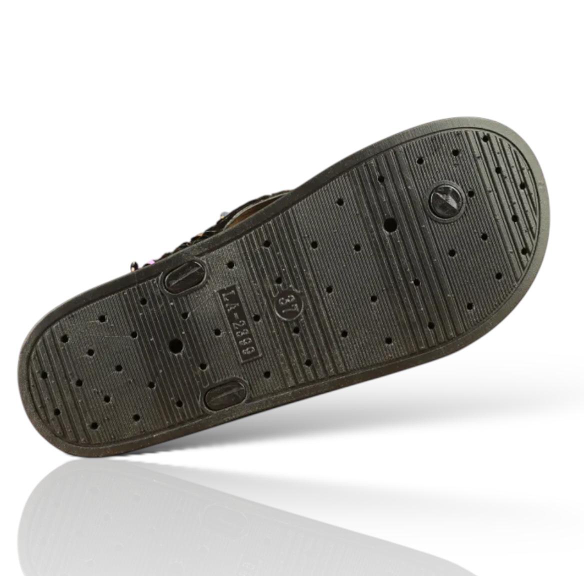 • Design: Features a quilted footbed for extra comfort and shimmering sequins on the straps.
