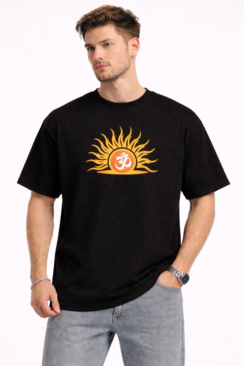 Spiritual Design: Features a striking sun-inspired 'Om' (ॐ) print on the front. The back includes the signature 'Vaidik Bastralaya' logo.