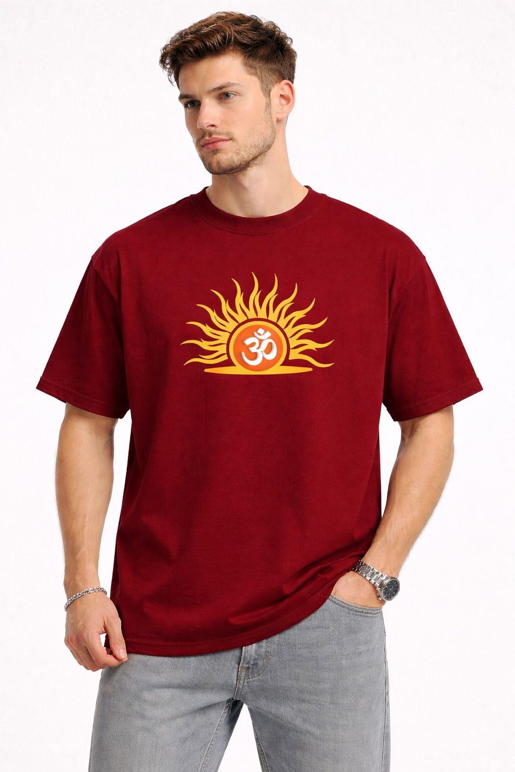 Spiritual Design: Features a striking sun-inspired 'Om' (ॐ) print on the front. The back includes the signature 'Vaidik Bastralaya' logo.