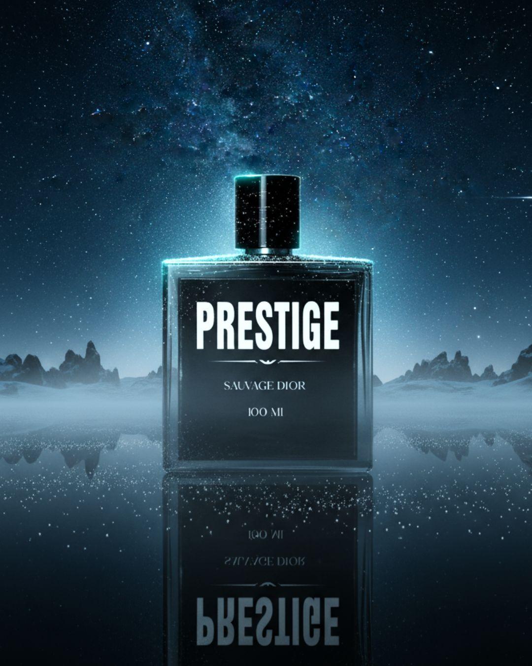 Completely crafted in-house at Prestige. Our blend targets a ~99% scent match to the Dior Sauvage DNA — bright bergamot-pepper opening, an aromatic lavender-spice heart, and a clean ambroxan-cedar dry-down — built to turn heads day or night. Long wear, strong projection.