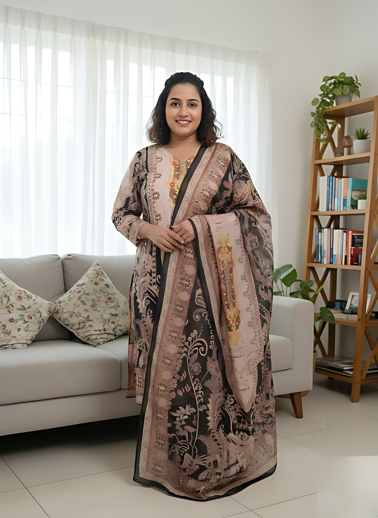 Elegant Printed Kameez â Beautifully designed front panel with intricate patterns that create a sophisticated and eye-catching look