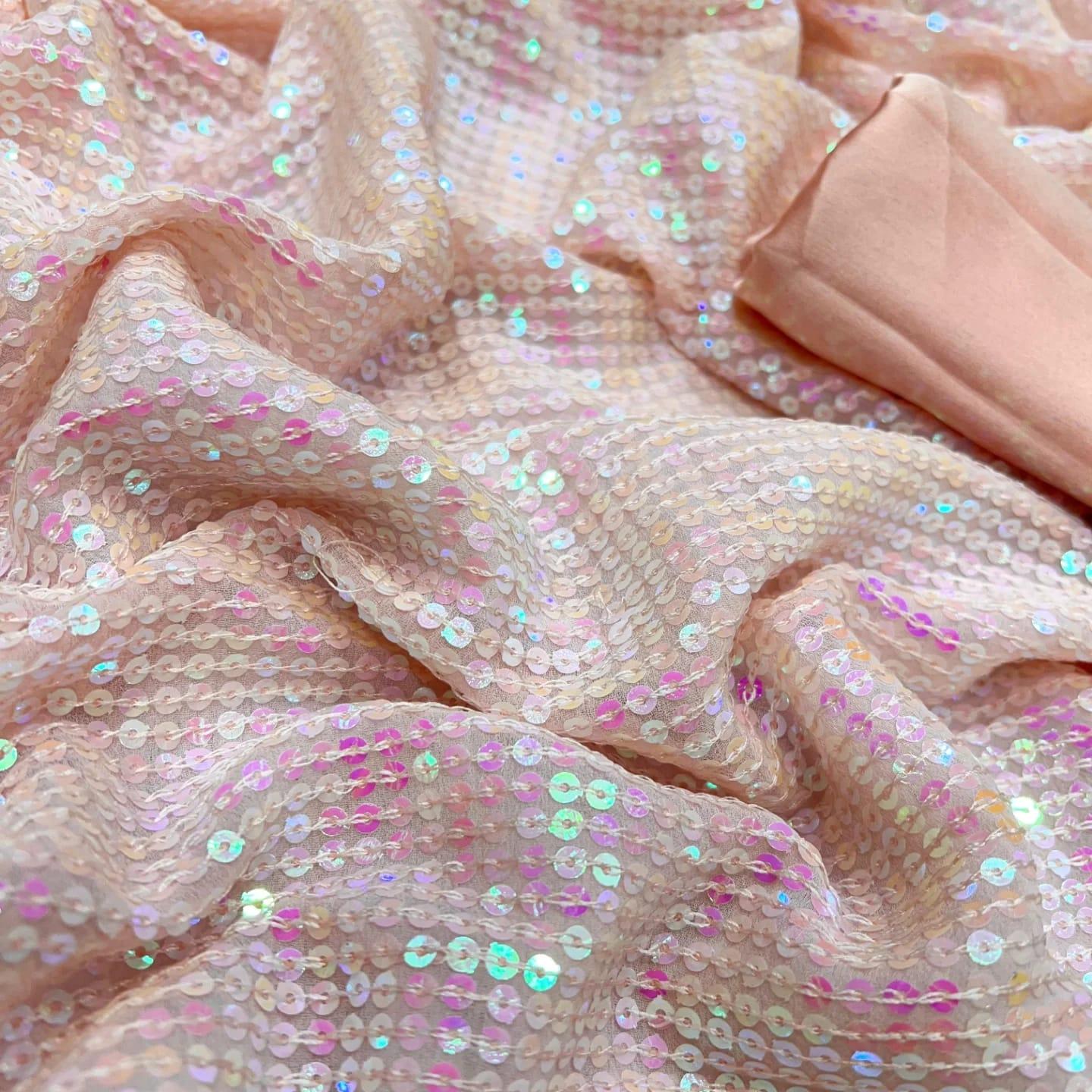 Intricate Sequins Work: The saree is meticulously adorned with delicate, handcrafted sequins embroidery, creating a vibrant and sparkling finish that catches the light beautifully.