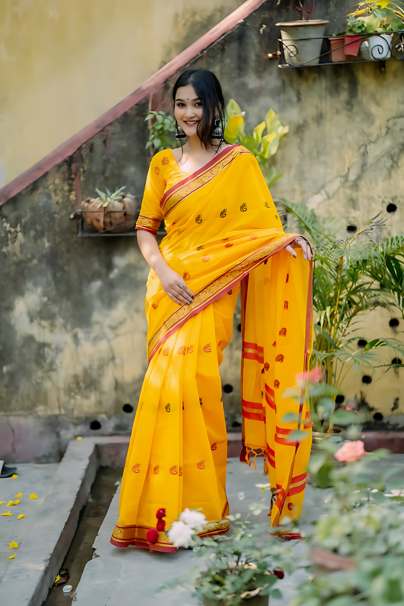Embrace timeless tradition with this elegant Tangail handloom saree crafted from pure cotton. Its soothing texture and graceful drape make it perfect for everyday elegance as well as festive occasions. A beautiful blend of heritage craftsmanship and comfort.