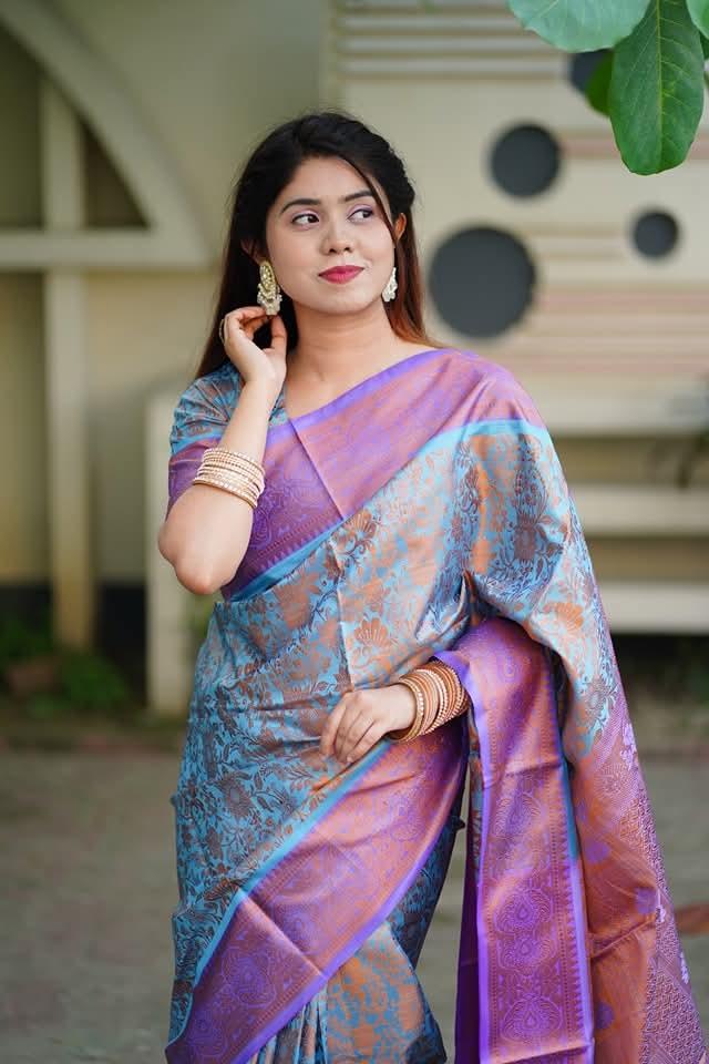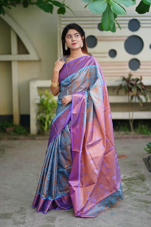 Exclusive Soft Kanjivaram Saree for Women - Denim Blue