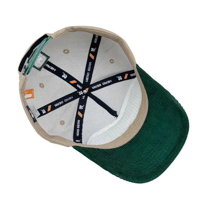 Barley twill crown with green corduroy visor.