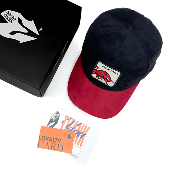 The crown is made from deep black suede, delivering a sleek and commanding presence. The visor, in bold red suede, adds striking contrast and fire to the look. At the front, a 3D patch featuring a fierce bull emblem is embedded symbolizing resilience, focus, and untamed energy. The 5-panel structure provides a clean, structured fit, while the adjustable buckle at the back ensures all-day comfort and flexibility.