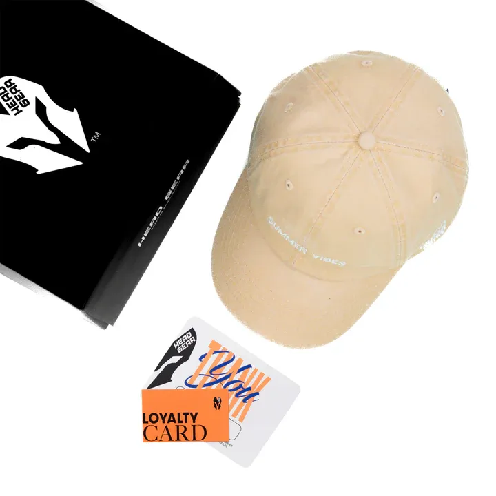 Introducing the HEAD GEAR SUMMER VIBES DENIM CAP, your go-to companion for relaxed summer days. Crafted entirely from washed cream denim, this unstructured 6-panel cap offers a laid-back fit and feel. The front features crisp “SUMMER VIBES” embroidery in white that captures the essence of carefree, sunny energy. With its soft-washed finish and adjustable strap closure, this cap blends timeless style with seasonal comfort.