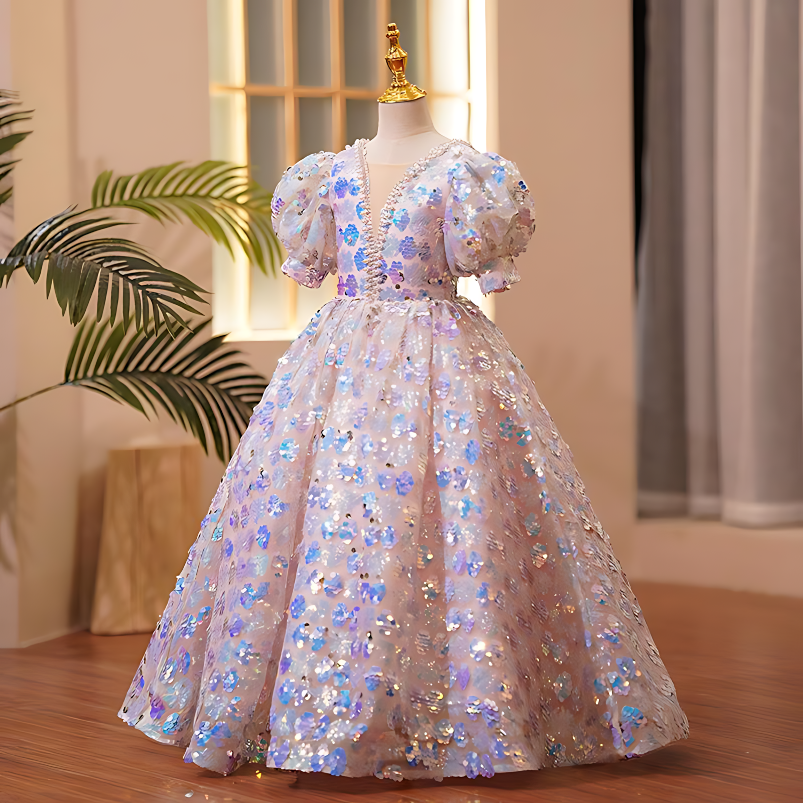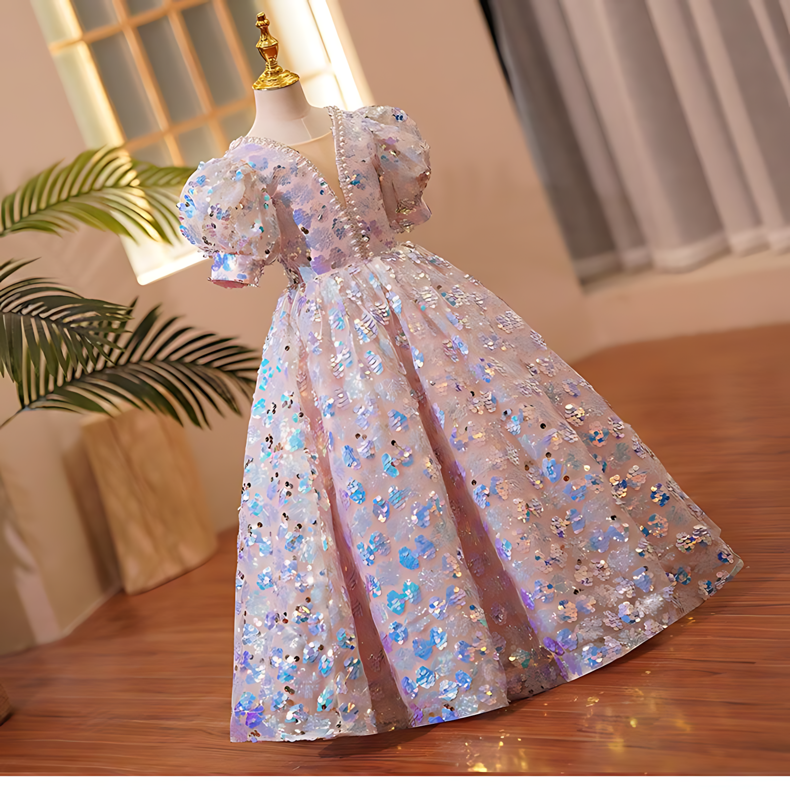 Let your little one shine like a star in this dreamy princess-style gown, designed with dazzling details and a magical touch. Perfect for birthdays, weddings, and special occasions, it brings elegance, sparkle, and fairy-tale charm together.