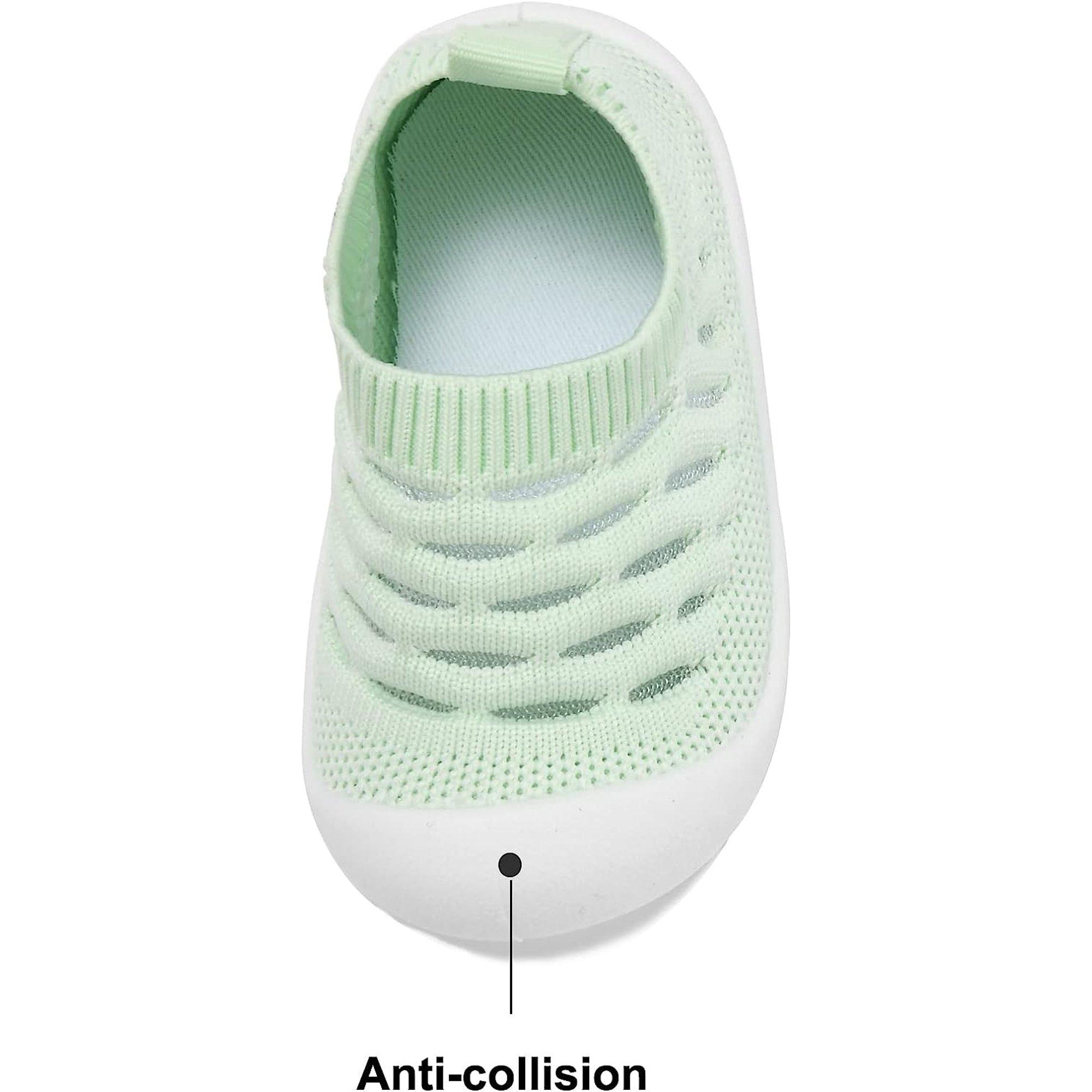 Anti-collision: Toe cap desgin adds extra barrier to protect little feet from sharp objects. Toe protects for crawling.