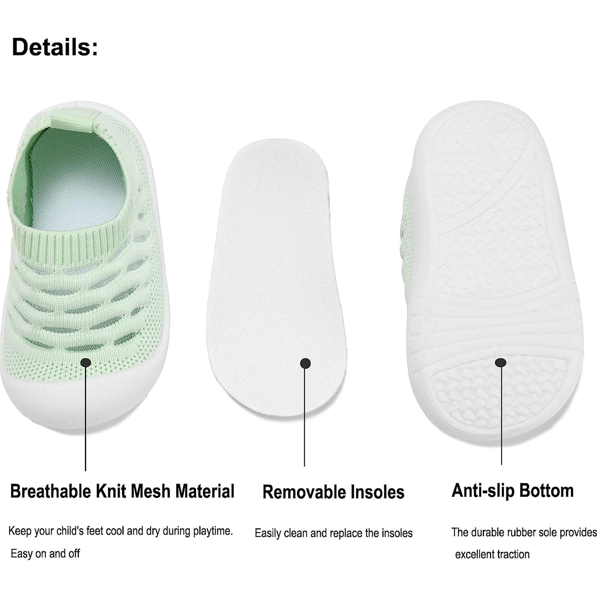 Non-slip: Anti slip outsoles prevent your child from slipping, wide toe area allow natural splaying of toes, provide maximum comfort, perfect for newly walking baby.