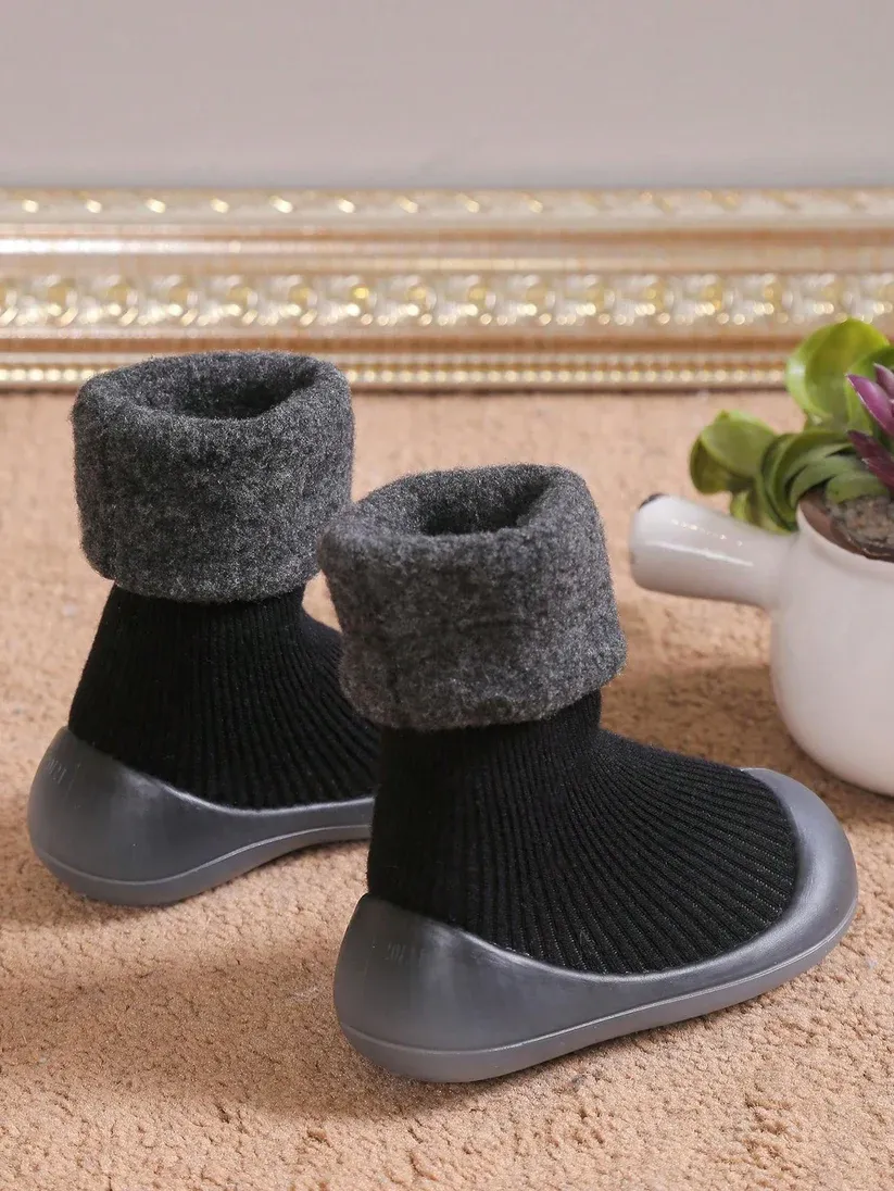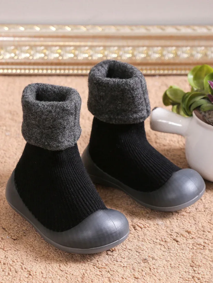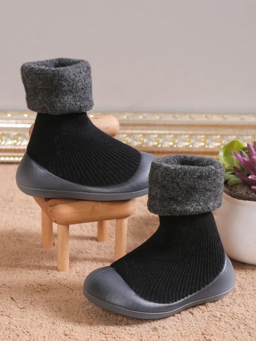 Imported Soft Sole Lined Hut Baby Socks Shoes - Black (China)