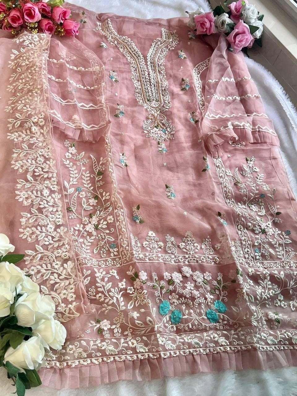 Fabric: soft silk organza With heavy embroidery real lock pearl work.