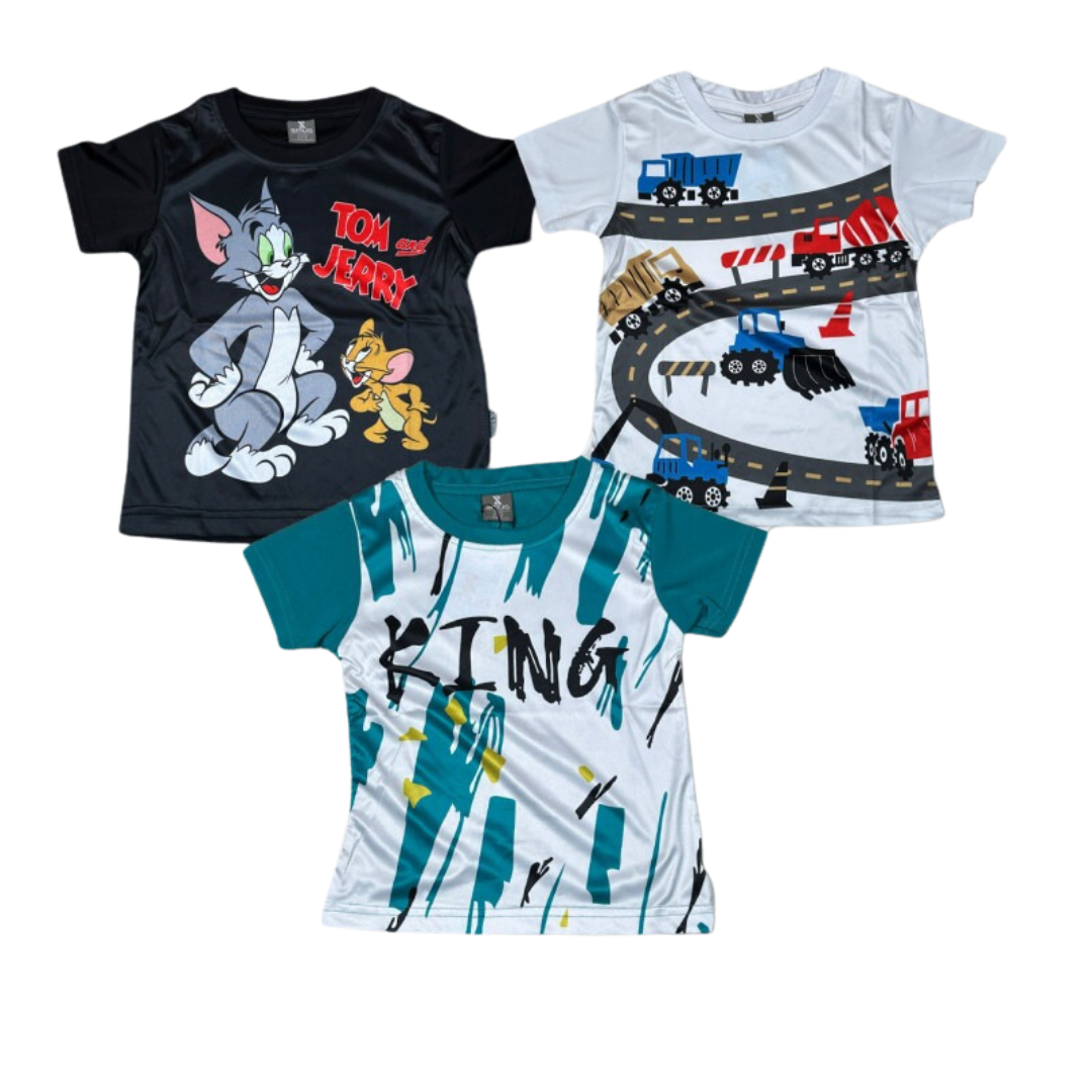 Diverse Graphic Themes: This set includes three distinct, high-quality shirts: one featuring the classic Tom & Jerry, one with a fun construction-site theme, and one with a modern "KING" graphic print.