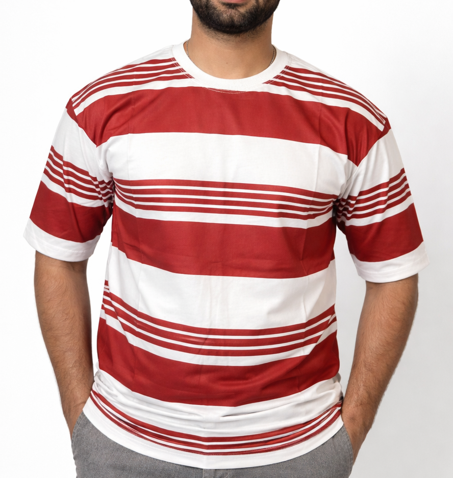 Manmode Loose Fit Striped Drop Shoulder - Red X White