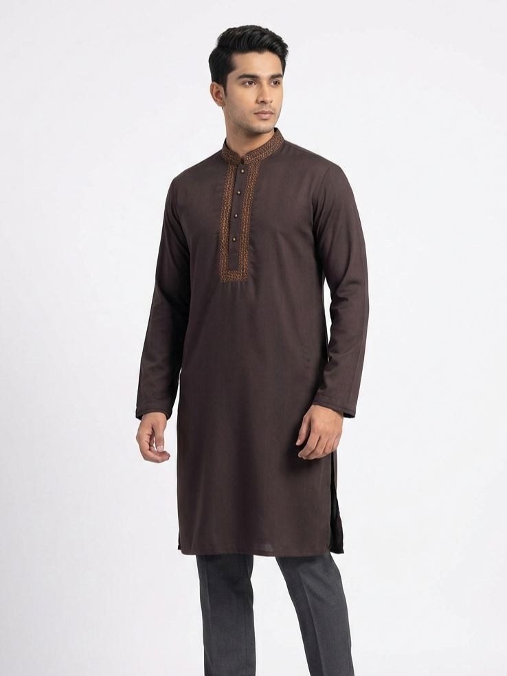 Men Coffee Brown Embroidered Panjabi â Coffee Brown