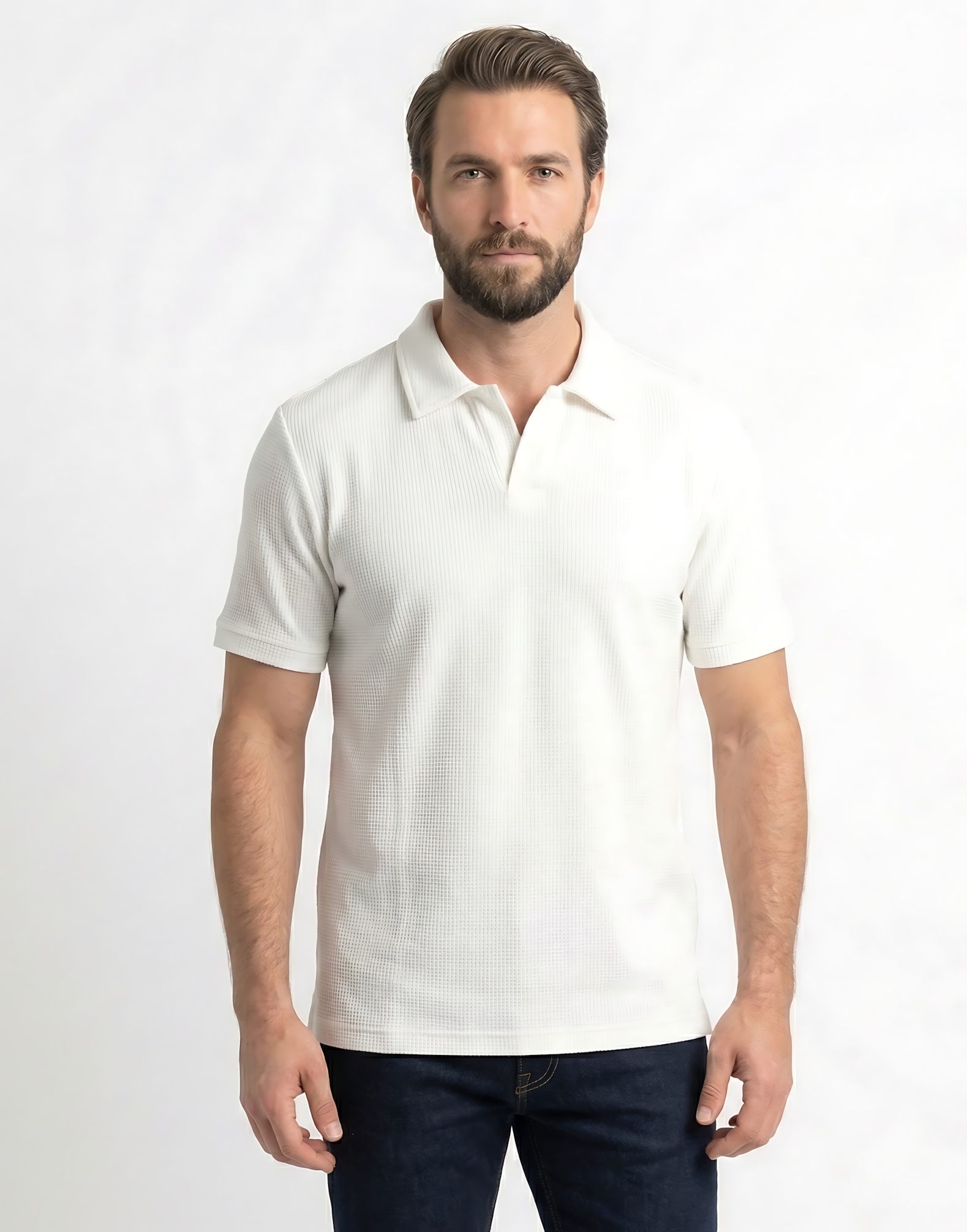 Menβs Casual Waffle Polo T-Shirt β White