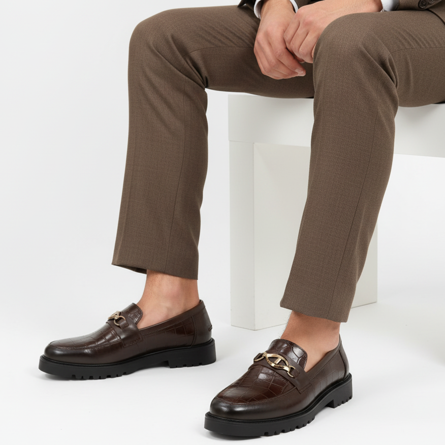 Make a powerful statement with our Men’s Croc-Embossed Chunky Loafers. Combining a rugged, modern silhouette with high-fashion textures, these loafers are designed for the man who wants to stand out. Featuring a bold "chunky" sole, they provide both an elevated height and a confident, grounded stride.