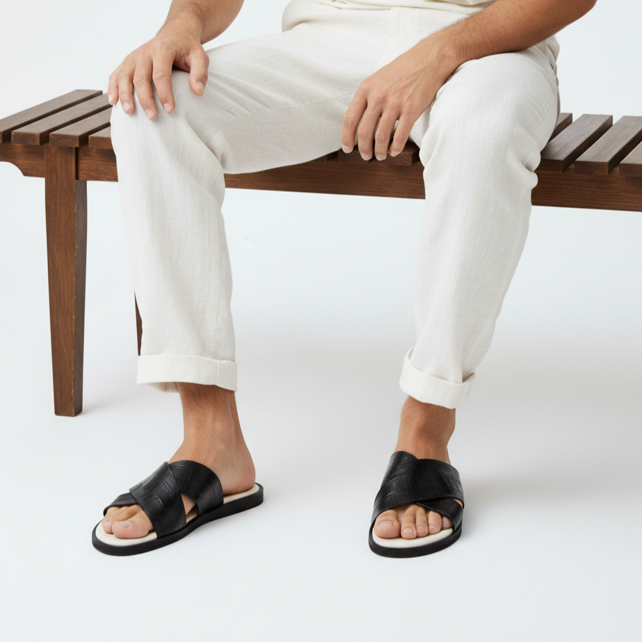 Step into a world of refined leisure with these Elegant Cross Strap Flat Sandals, a minimalist masterpiece designed for the man who appreciates a clean, sophisticated, and powerful aesthetic. These sandals offer a modern take on classic casual footwear, perfect for pairing with linen trousers or tailored shorts for an aristocratic summer look.