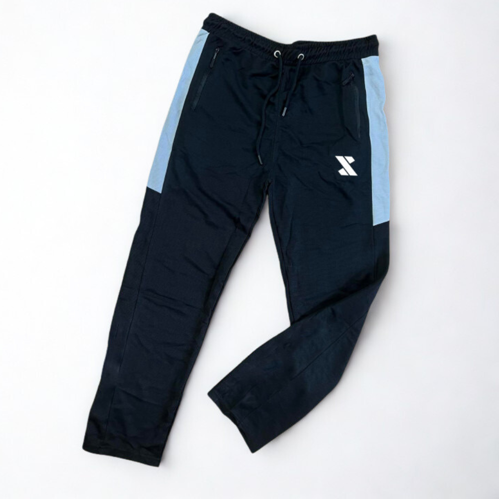 Offers a refined and polished appearance with high-contrast light blue side panels on the trousers and modern shoulder detailing for a professional profile.